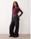 ASOS DESIGN modal wrap detail long sleeve tee in burgundy