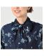 インドカディブーケストライププリントのリボンブラウス(インディゴ)