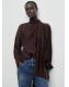 Con un diseño recto, esta prenda presenta un elegante cuello alto adornado con fular y mangas largas con puños abotonados