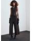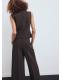 Con un diseño entallado, esta prenda presenta un cuello pico adornado con detalle de lazos. Con tirantes anchos, se completa con un cierre de cremallera en la parte posterior. Cuenta con un pantalón a conjunto