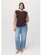 Diseño recto. Cuello barco. Manga corta. Hombreras. Detalle fruncido en el hombro. Cierre de botón en el cuello. Disponible Plus