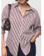 Tejido mezcla de algodón. Diseño recto. Estampado de rayas. Manga larga con puños abotonados. Bolsillo de parche en el pecho. Cierre de botones en la parte delantera. Disponible Plus