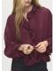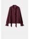 Con diseño recto y volantes, esta prenda presenta un cuello redondo adornado con un fular. Las mangas largas tienen puños abotonados y el cierre delantero se completa con botones
