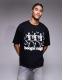 Dancing skeleton graphic and text print on front