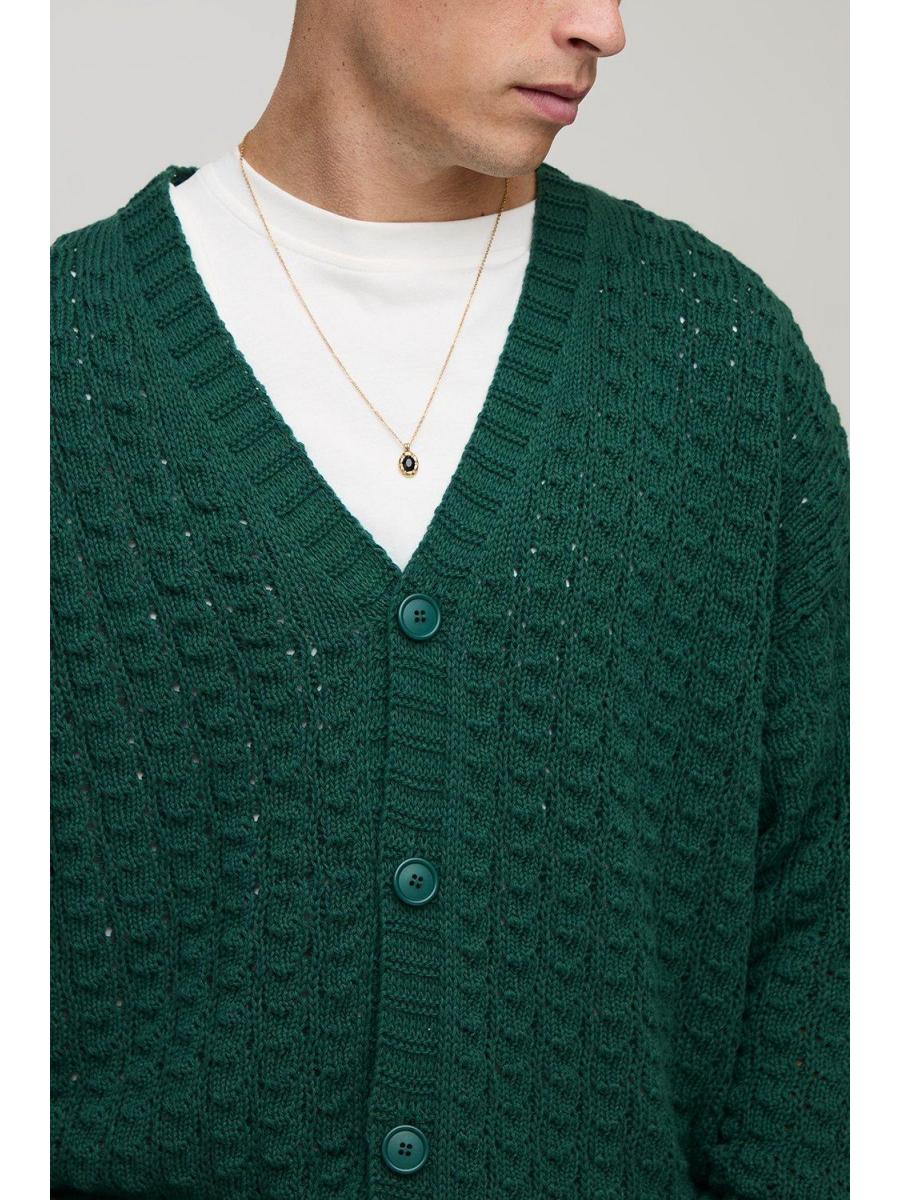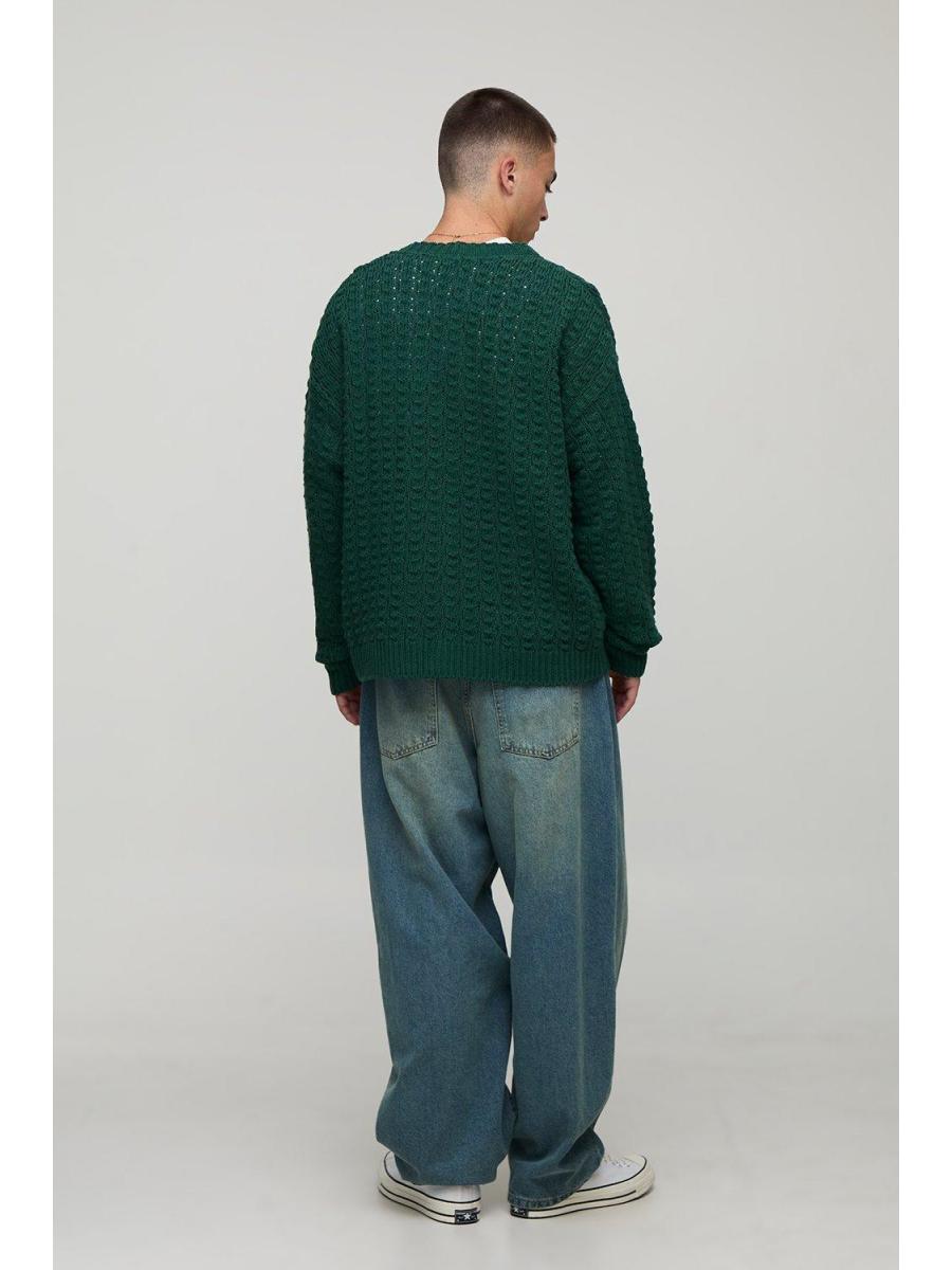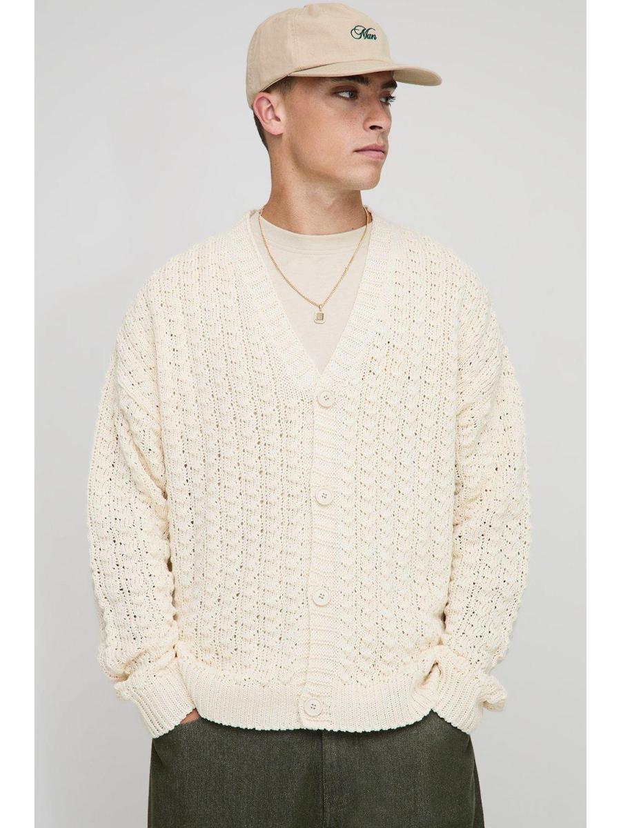 Relaxed Boxy Fit Cable Lace Knitted Cardigan