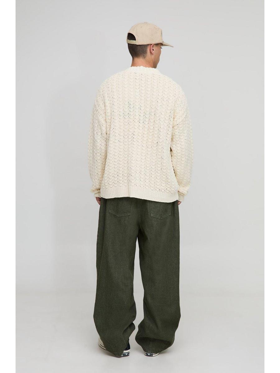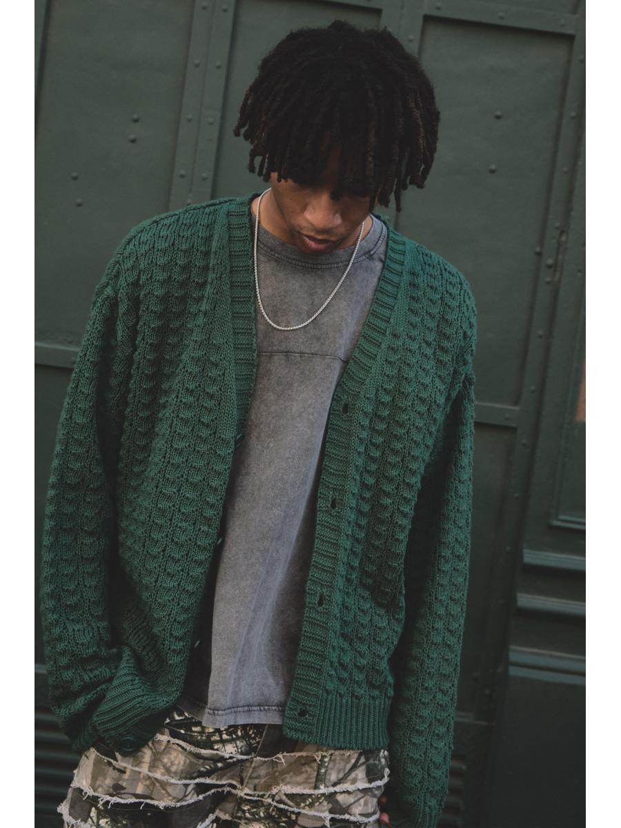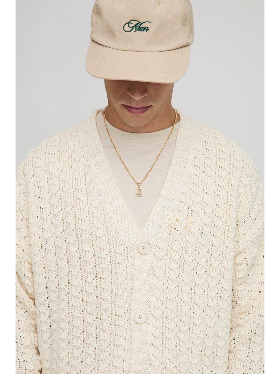 Relaxed Boxy Fit Cable Lace Knitted Cardigan