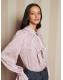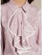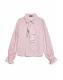 Soft and delicate, the Bow Touch Ruffle Blouse drapes with fluttering ruffles and pearl buttons-like ribbons tied on a gift box.