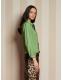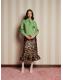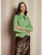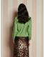 The Paper Pleat Blouse, with its delicate neck tie and subtle pleats, brings the richest green to your everyday-ideal for slow mornings and relaxed afternoons at home. For an even richer look, pair with the Suite Leopard Jacquard Skirt.