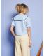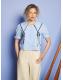 A sailor’s collar trimmed in satin and bows-The Glassy Bowed Collar Blouse sings of boat rides and braids undone by the breeze. Pearlescent buttons complete the charm.