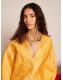 This fitted blazer is crafted from structured floral jacquard that catches the light like the first rays of morning. Fully lined for a flawless fit and detailed with front seam pockets, it’s finished with gemstone buttons featuring pearlescent centers-tiny sunbursts of their own. Whether layered over a dress or paired