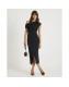 Black Asymmetric Draped Wrap Midi Dress