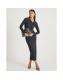 Grey Long Sleeve Twist Front Midi Dress
