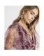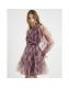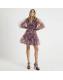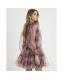 Beige Long Sleeve Tulle Floral Mini Dress