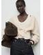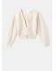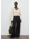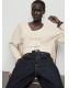 Confeccionado en tejido de punto medio, este diseño recto presenta cuello pico y manga larga. El cierre de lazos en la parte delantera añade un toque distintivo