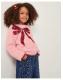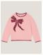 Bow down to cuteness! Stitched with super-soft fuzzy yarns in a dreamy colour combo, this jumper is finished with red contrast hems to match the sequin-adorned bow across the chest. Pink