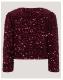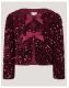 For the party girls! This adorable jacket is designed in soft velvet and decorated with shimmery sequins for an elevated finish. Finished with two large bows to the front. Red