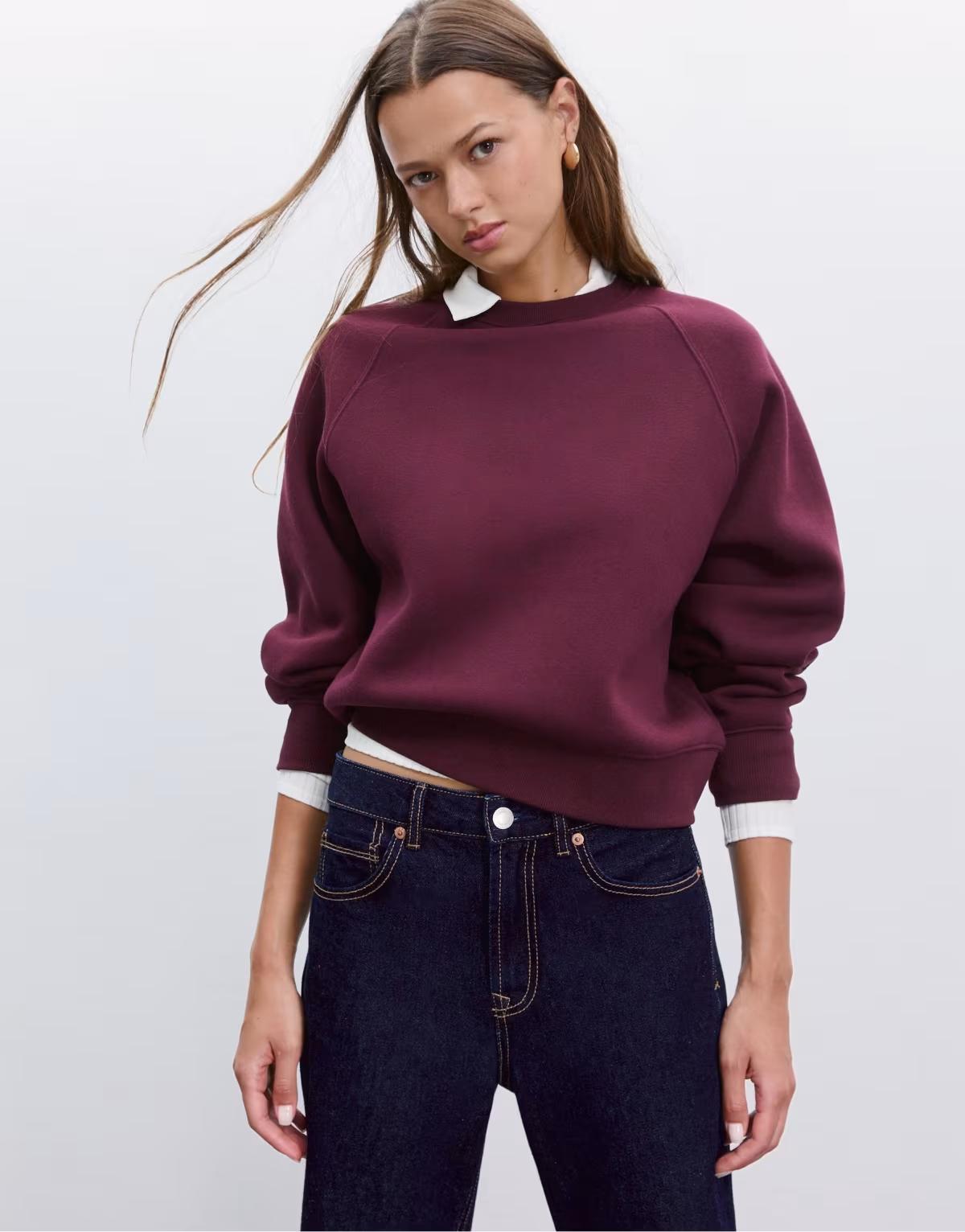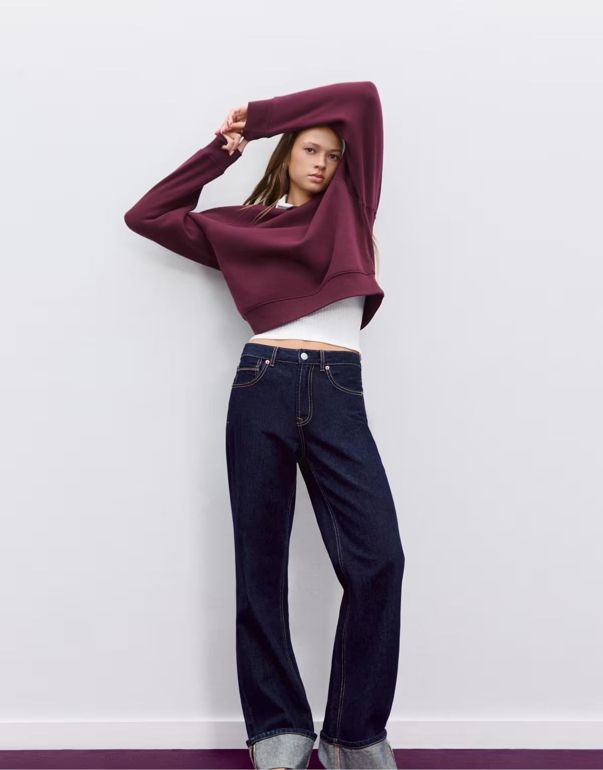 BrandBarcelona-born clothing brand Stradivarius moves to its own beat. With an eye for minimalism and trend-led detail, expect classic silhouettes and a neutral colour palette (with the odd print thrown in for good measure). The perfect stop for a wardrobe refresh, our Stradivarius at ASOS edit has everything from floaty day dresses and blouses to staple jeans and T-shirts. Looking for layers? Check out the brand’s jumpers, jackets and blazers.Look After MeMachine wash according to instructions on care labelAbout MeSweatshirt fabric: soft and warm fabric with a cosy raised texture inside