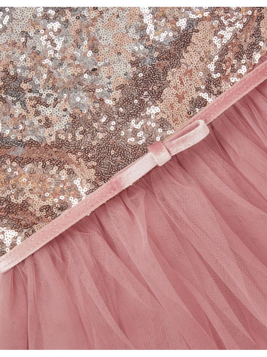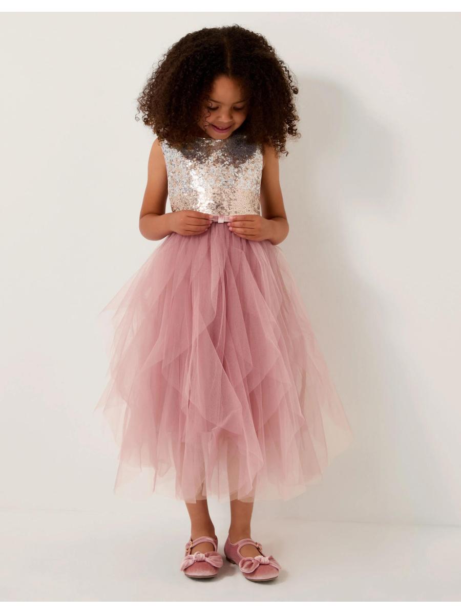 *Gasps*. It's a princess! Perfect for their next birthday bash, this dress features a shimmery sequin bodice with elegant tulle ruffles that make up the skirt. Gorgeous, right? Pink