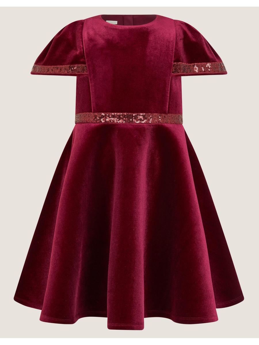 Let the festivities begin! In this, they'll always be best-dressed. Made from luxuriously soft velvet, this party dress features short sleeves, a twirl-worthy hem and sequin embellishments for a touch of sparkle. Red