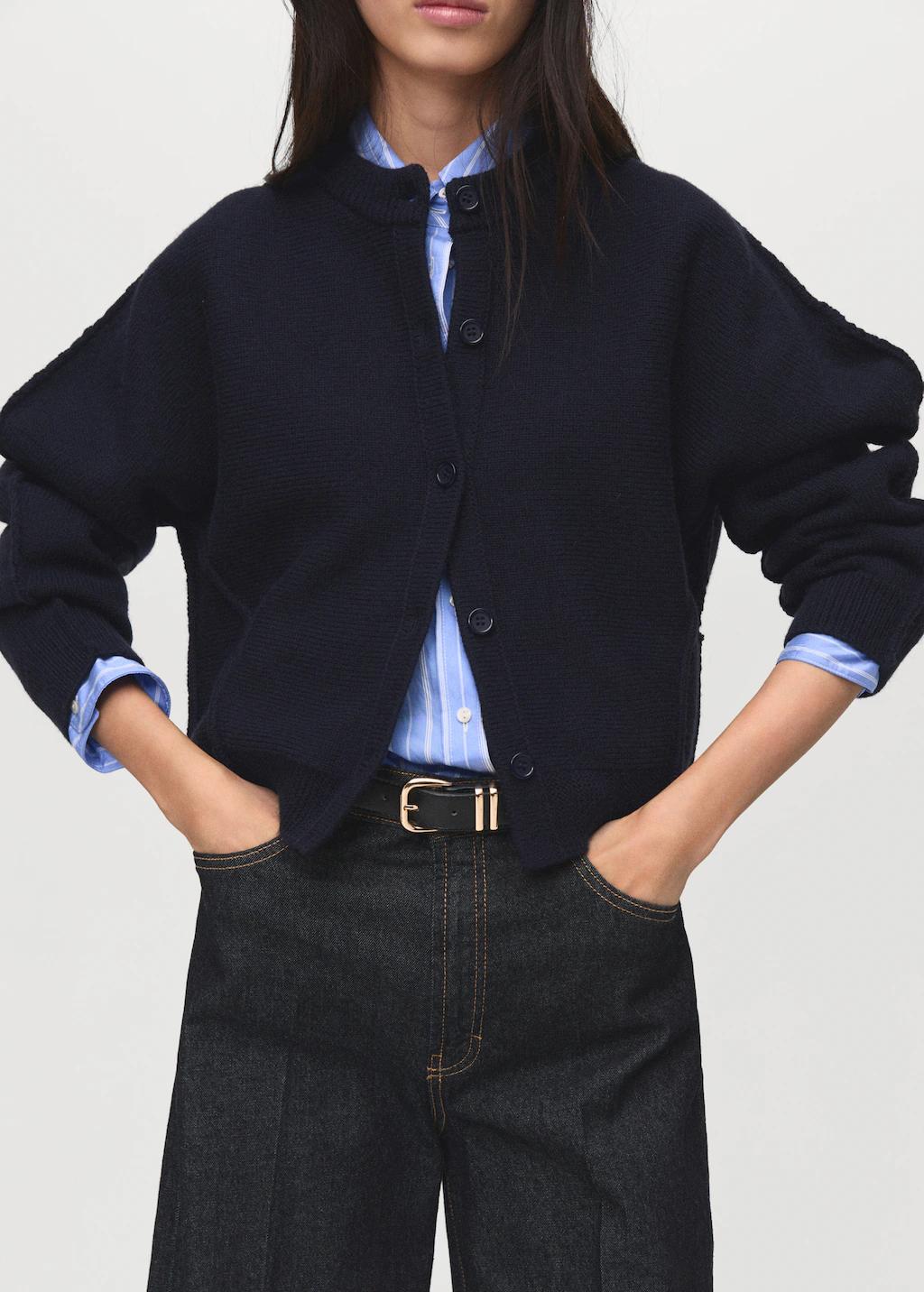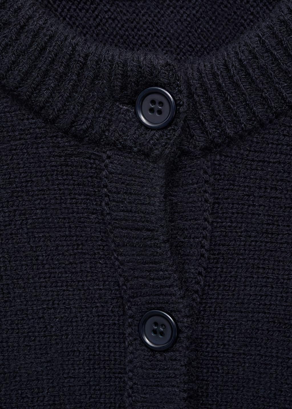 Tejido mezcla de lana. Tejido de punto medio. Diseño recto. Cuello redondo. Manga larga. Cierre delantero con botones