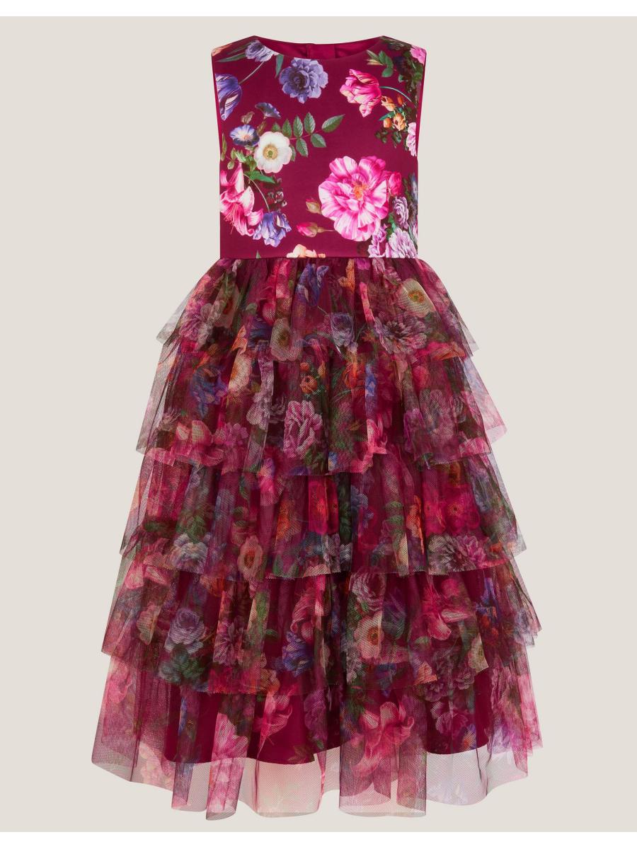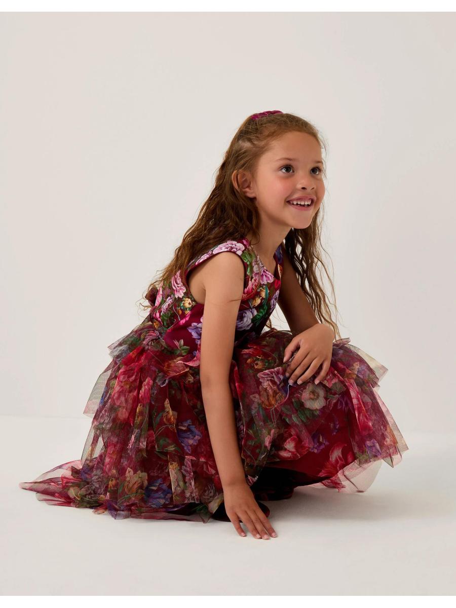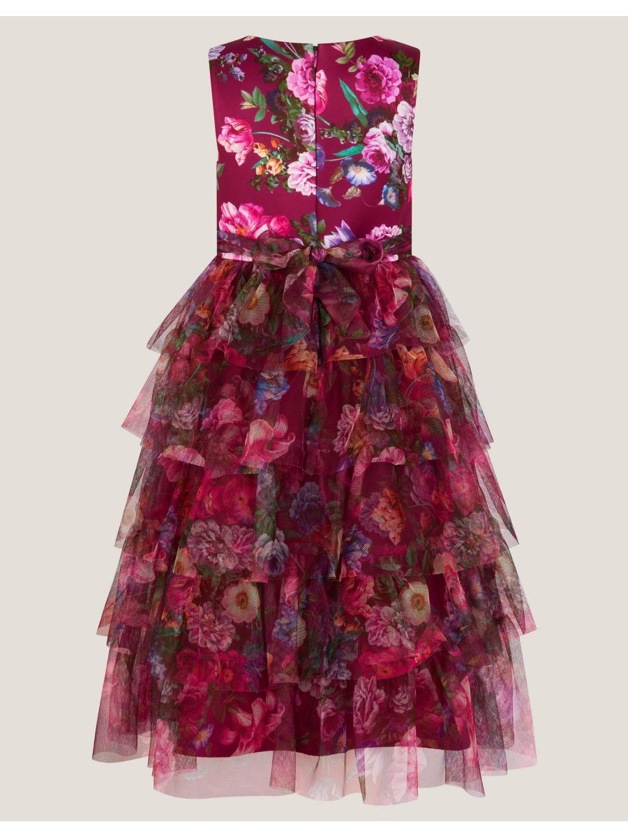 *GASP* A fairy princess! A wearable bouquet we know they'll love, this dress is perfect for parties and special occasions. Designed with a sleeveless bodice, tulle tiers and colourful florals patterned throughout. Finished with a back zip fastening and bow around the waist. Red