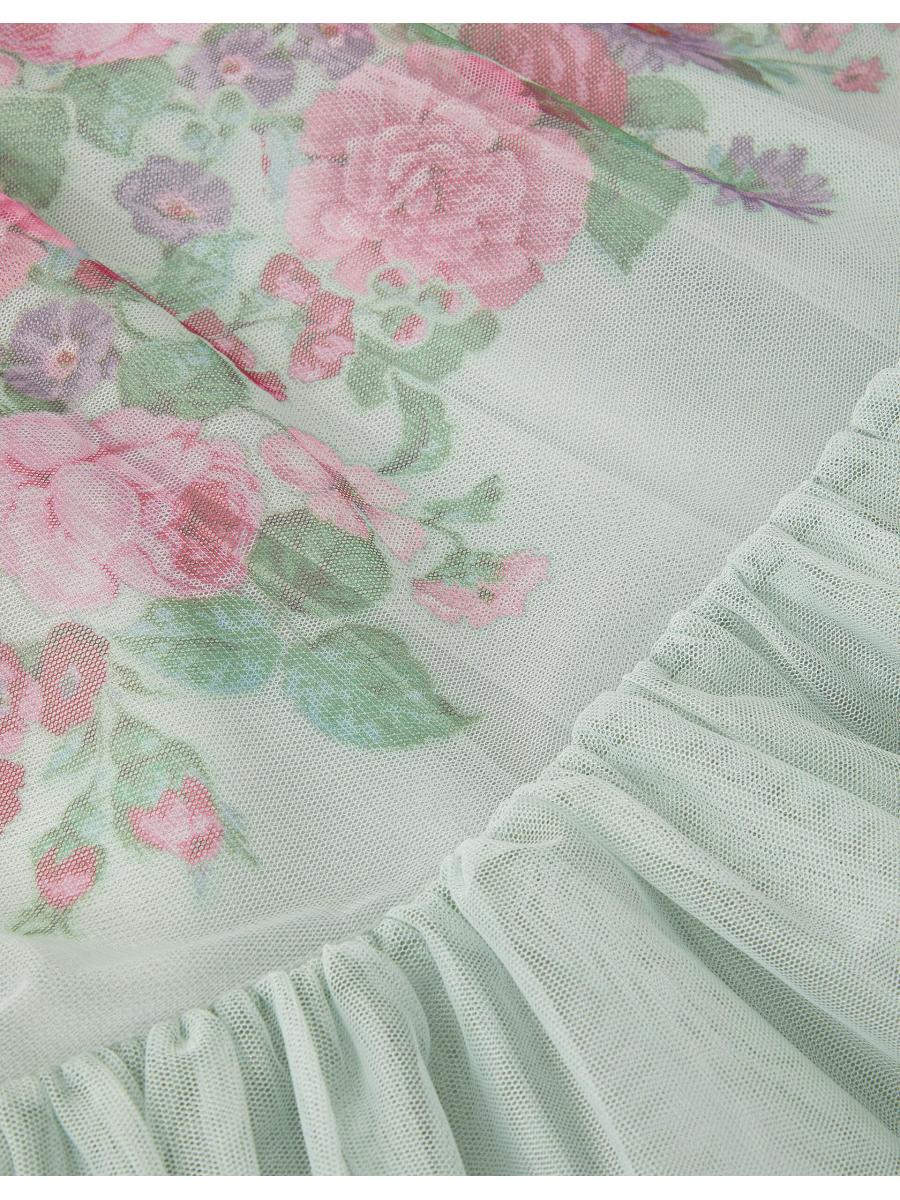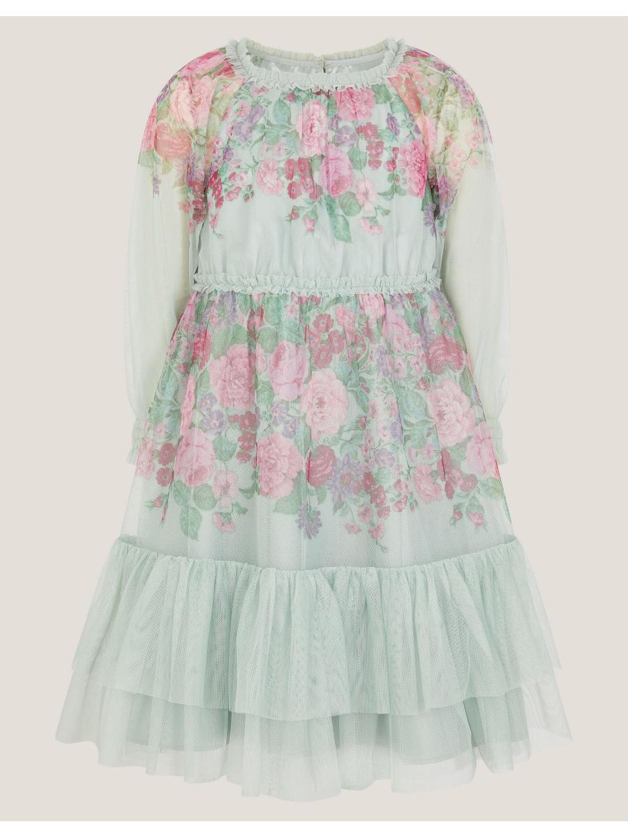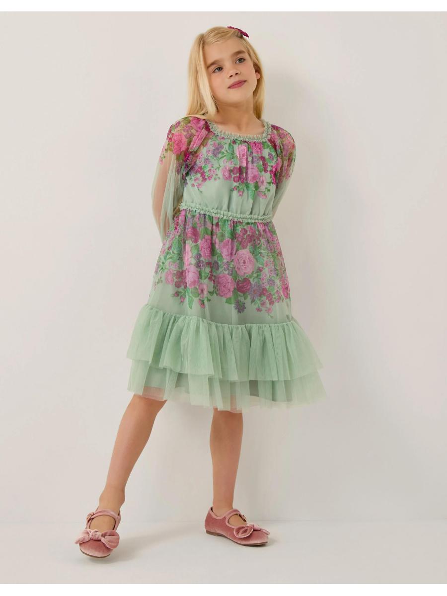 Be the bouquet! As pretty as a meadow in springtime, this dress is a bloomin' lovely pick for their next party. Designed with long sheer sleeves, tiering ruffled at the hem and an array of vintage-inspired flowers in pretty pink colours. Green