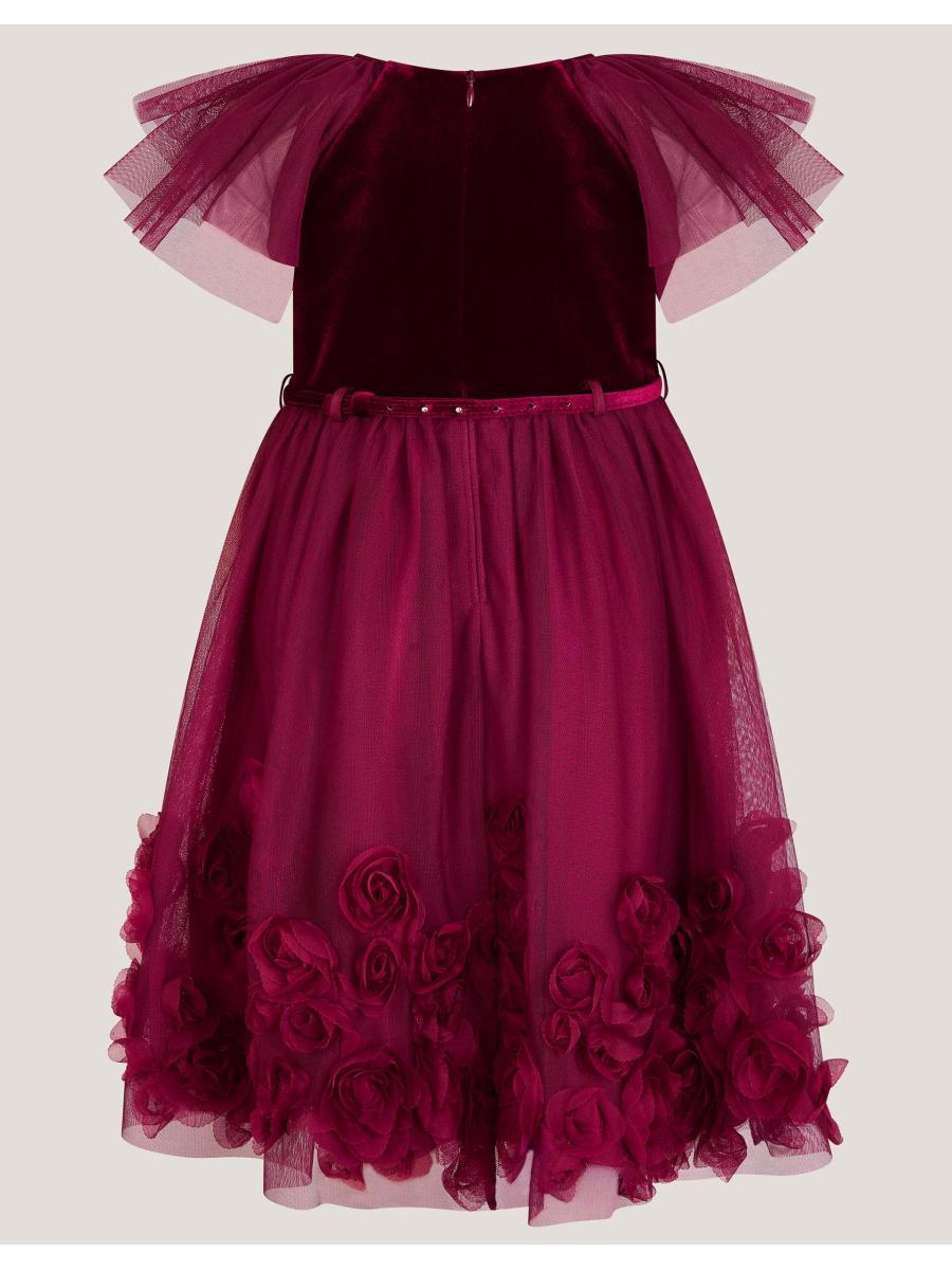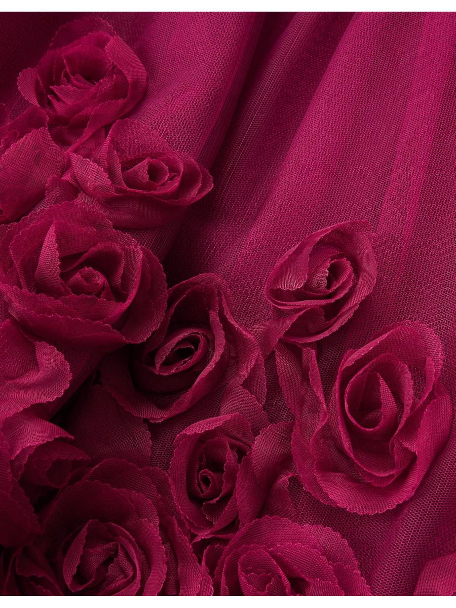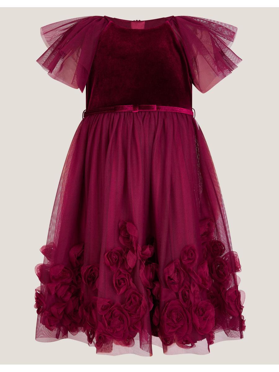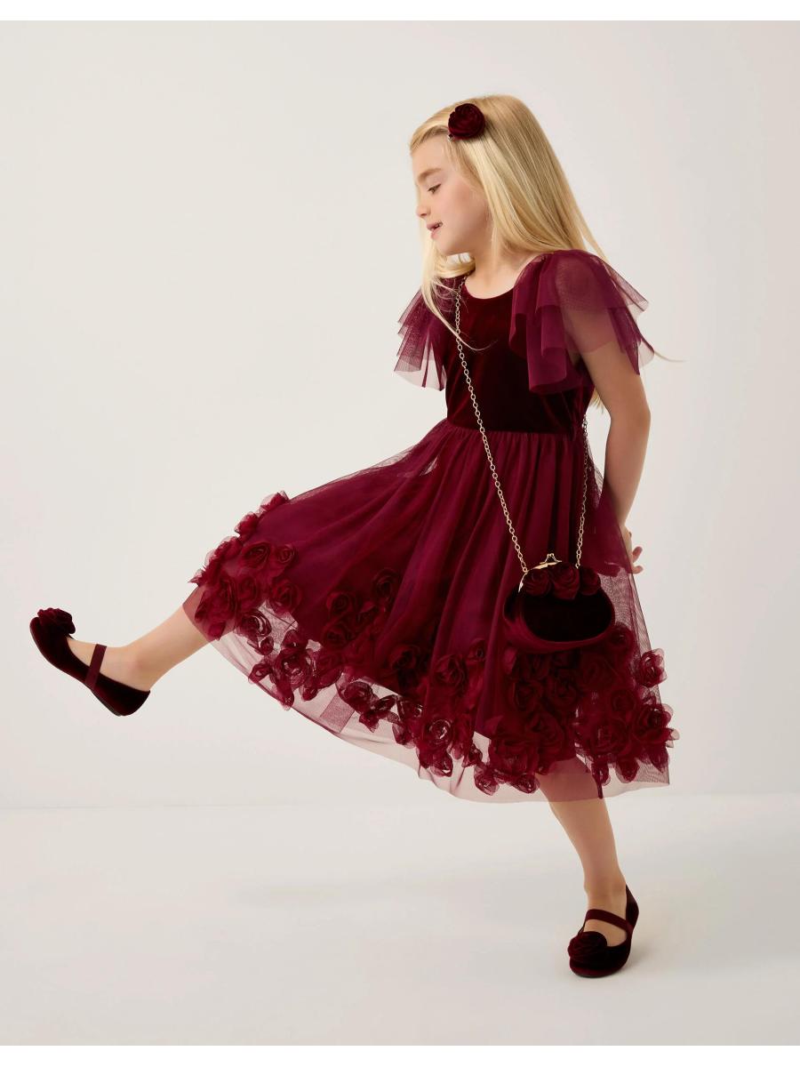 Cherry sweet! A dazzling pick for fun festivities and special soirees, this dress is sure to make them best-dressed at every occasion. Designed with tiering tulle sleeves to match the applique skirt, the bodice features a velvet bodice with a round neckline. Red