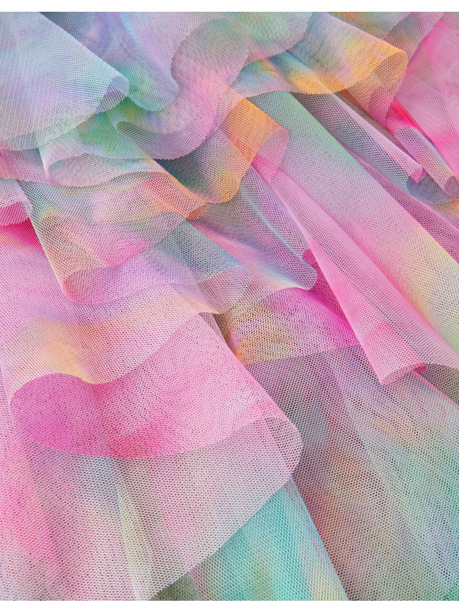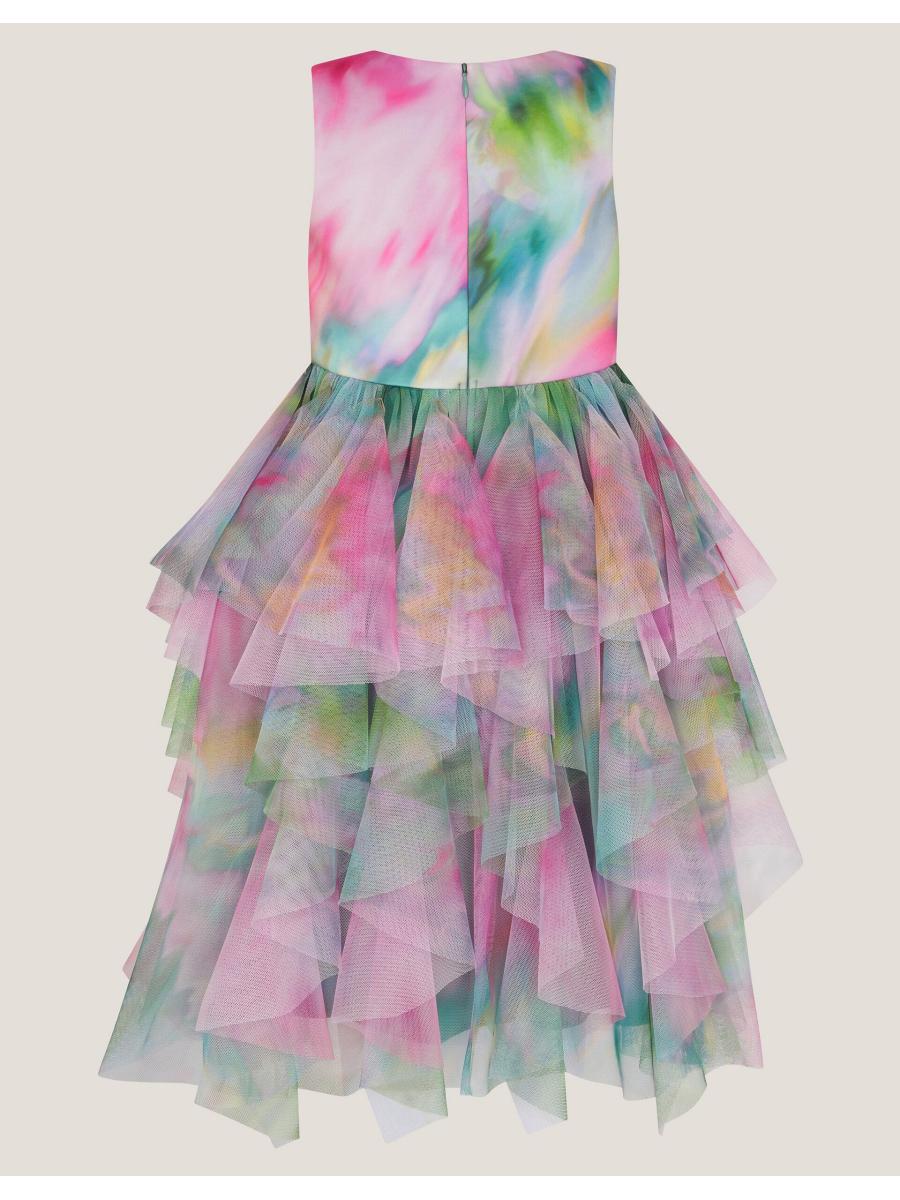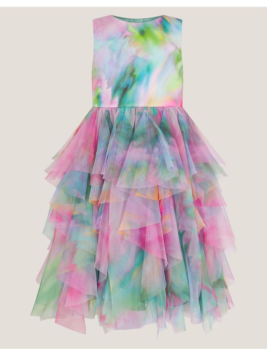 Work of art. Breathing life into their partywear collection, this dress is soaked in an array of vibrant colours with an artistic, hazy finish. It's designed with a sleeveless bodice and cascading tulle ruffles for them to swish and twirl around in endlessly. Fastens with a discreet back zip. Multi
