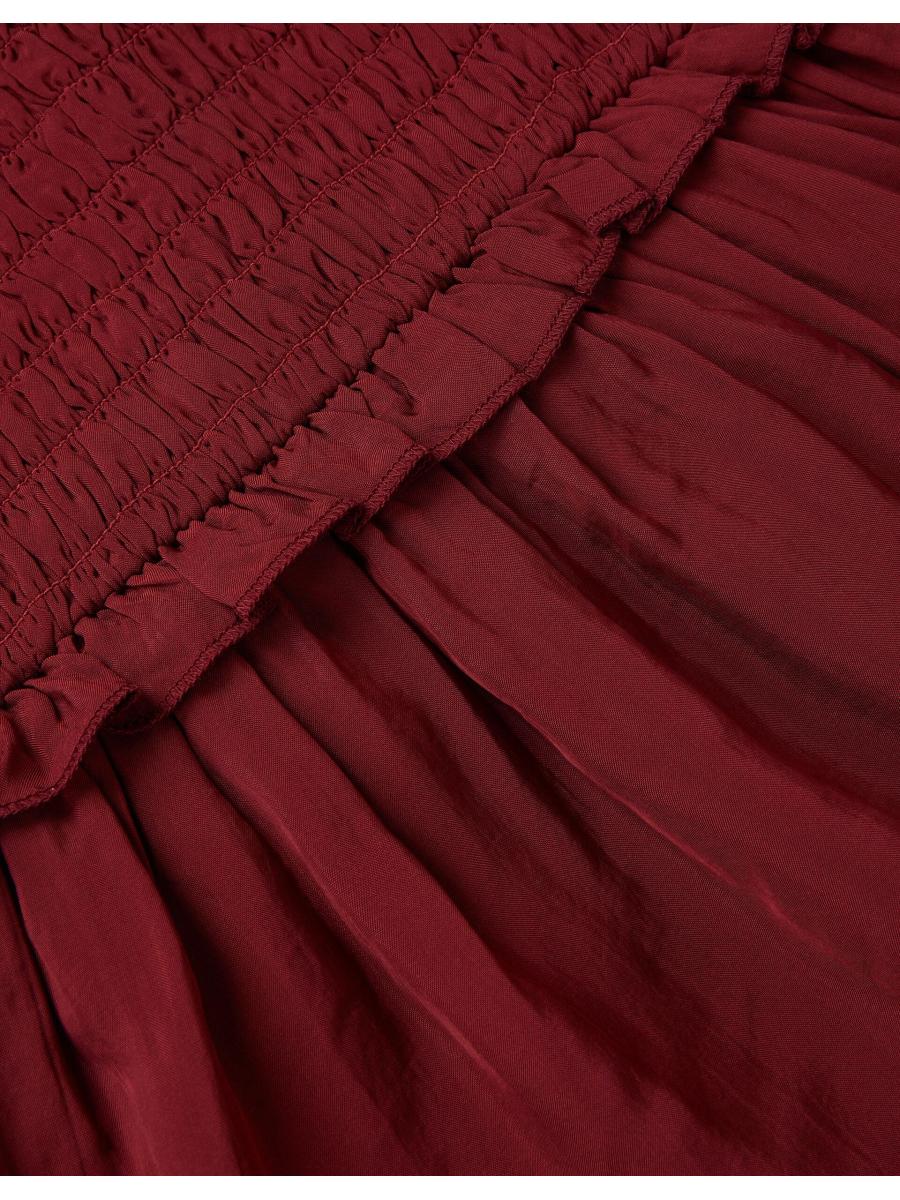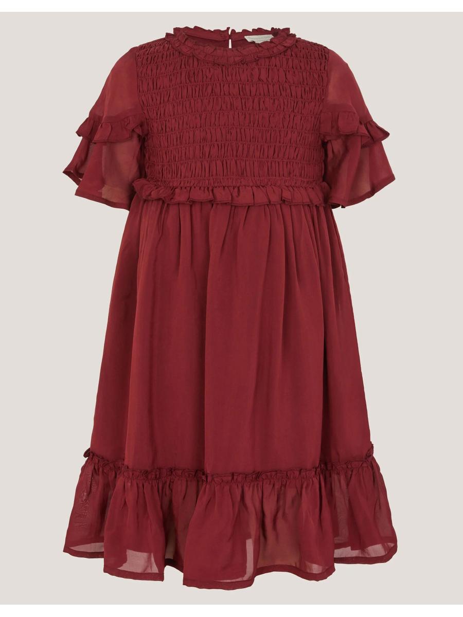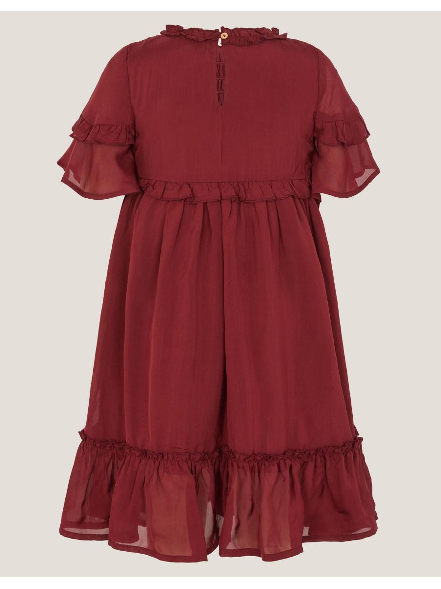 Cute day dress alert! Soaked in the colour of the season, this dress is a trendy pick for their weekend wardrobe. Designed in soft satin with short, frilly sleeves, a smocked bodice and flouncy ruffled hem. Red