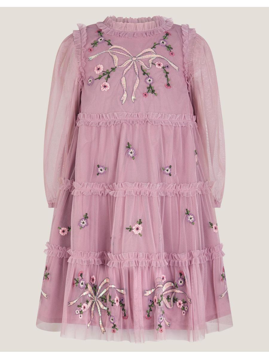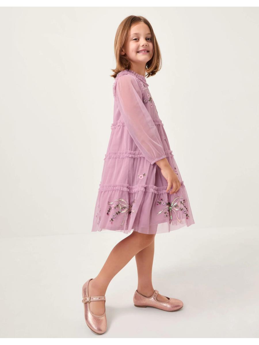 Daytime sparkles? Yes, please! Designed with long sleeves and frilly tiers, this dress is embellished with sequin bows and floral embroidery. Complete the look with soft tights and cowboy boots for an outfit they won't want to stop wearing. Purple