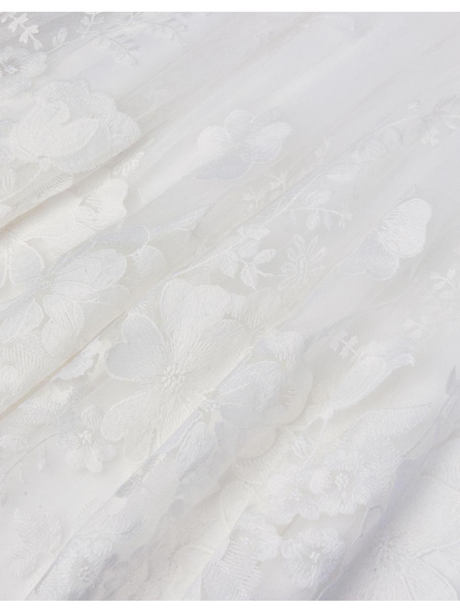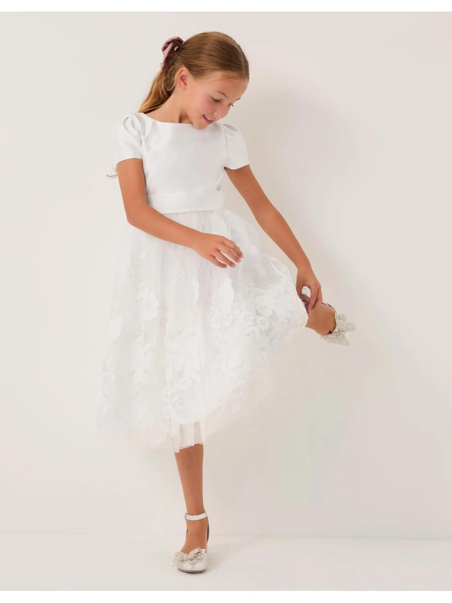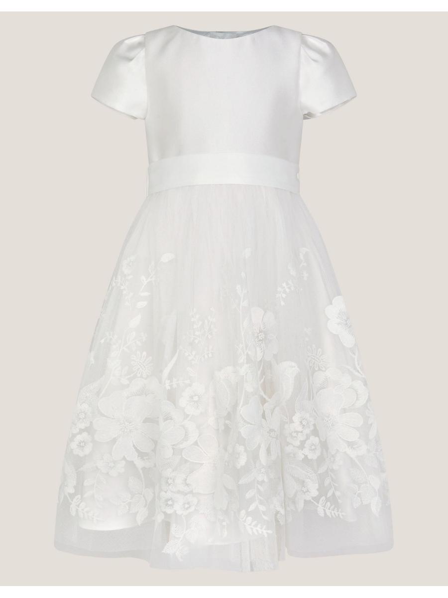 What an angel. Communion, christening, wedding or birthday? This dress is perfect for any special occasion. Designed with a short sleeve satin bodice, the skirt is decorated with delicate floral embroidery. Finished with a back zip fastening. Ivory