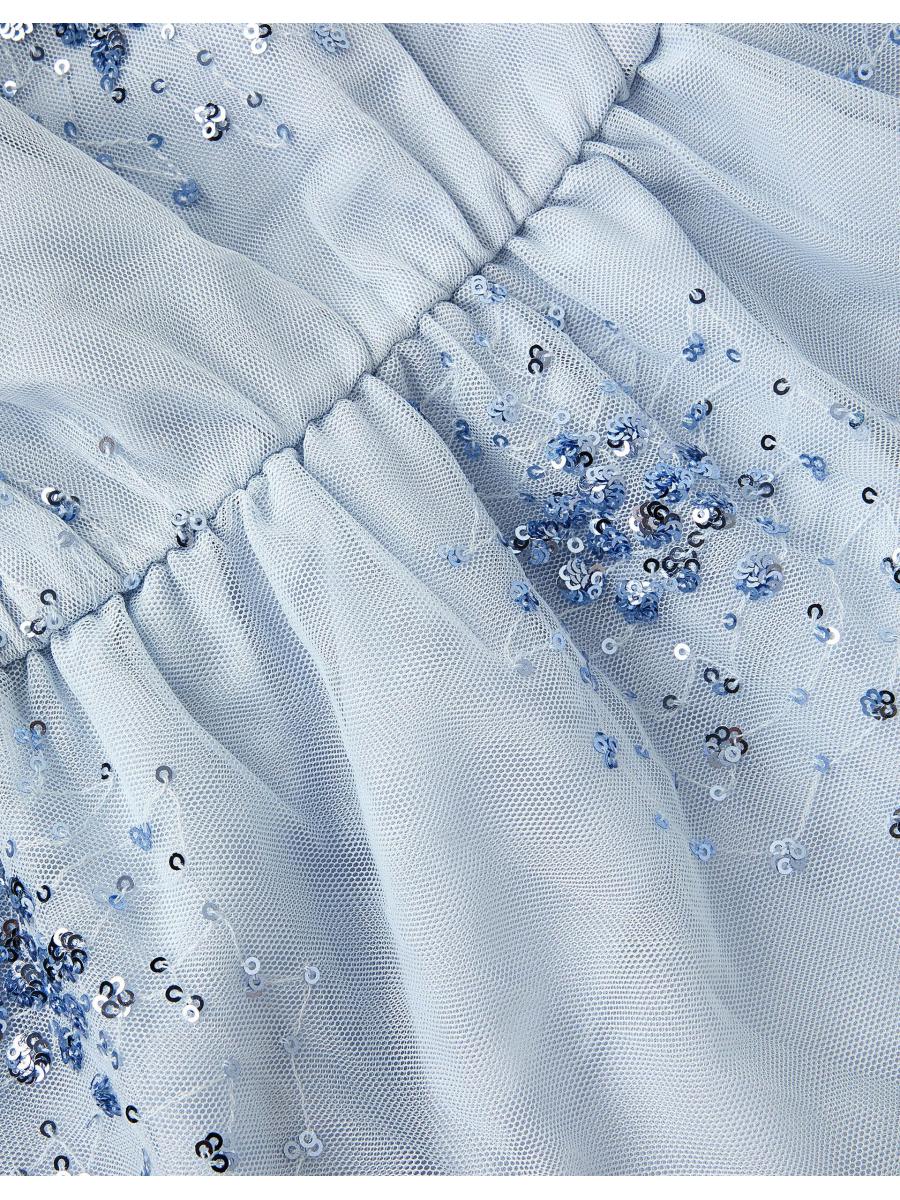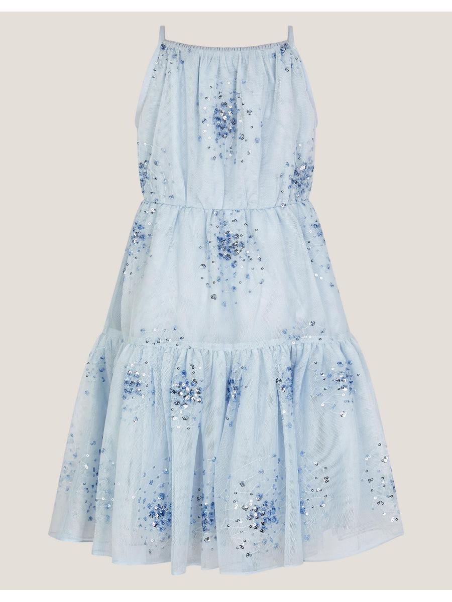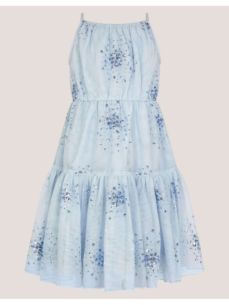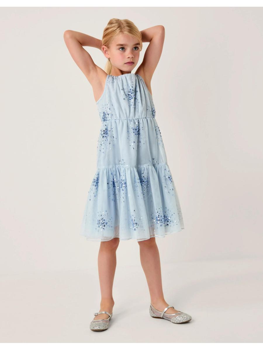 Baby, you're a firework! Bursting with sparkly sequins, this dress is ready to party. Structurally strappy, it's designed with layers of tulle in a tiering silhouette they can swish and twirl on the dancefloor, all day and night long. Complete the look with their favourite dancing shoes (and a cropped cardigan in case they get chilly). Blue