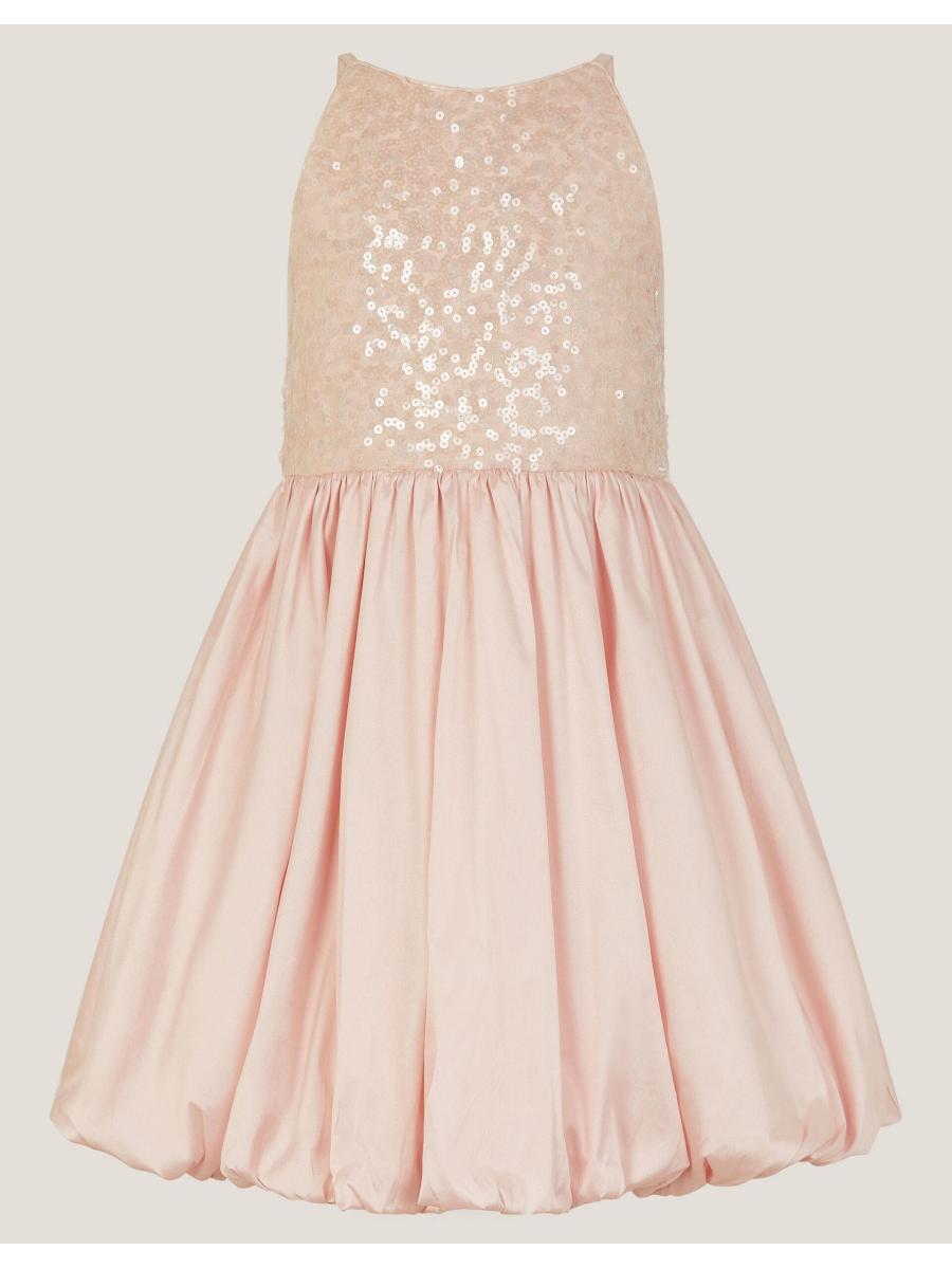 Ready for twirling. Pretty, puffy and playful, this pink party dress will be a favourite in their collection. Designed with a strappy bodice stitched with sparkly sequins, the bubble hem adds a touch of drama (and style) to their look. Finished with a back zip fastening for easy dressing. Pink