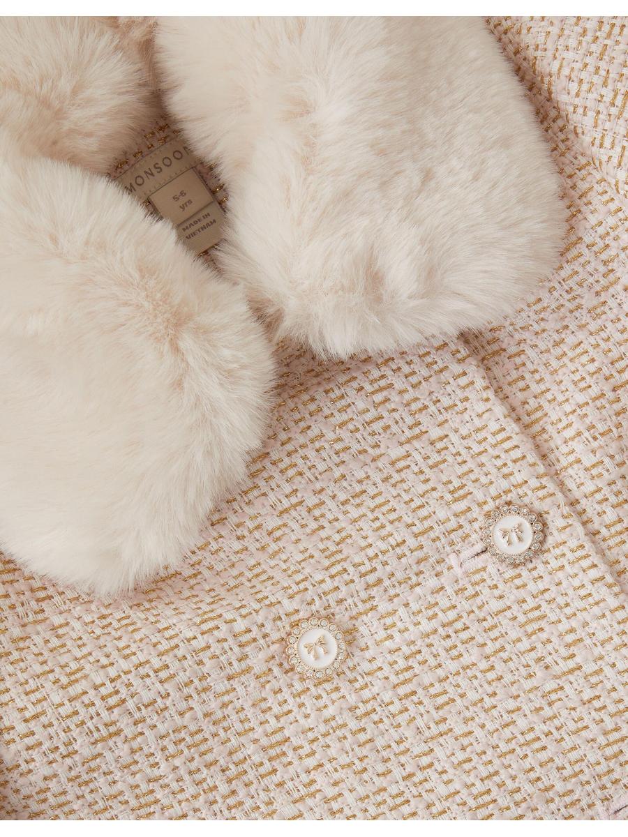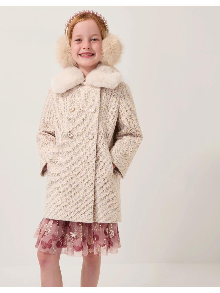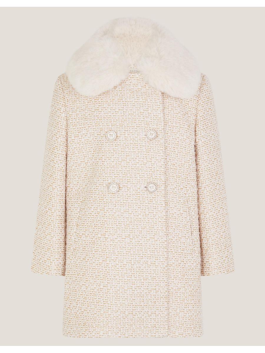 Oooh, fancy! Woven with golden threads for a touch of sparkle, this tweed coat is an elevated outerwear pick for all their weekend outfits in winter. Fastening with bow-tiful double-breasted diamante buttons, the faux fur collar is detachable for a 2-in-1 style. Cream