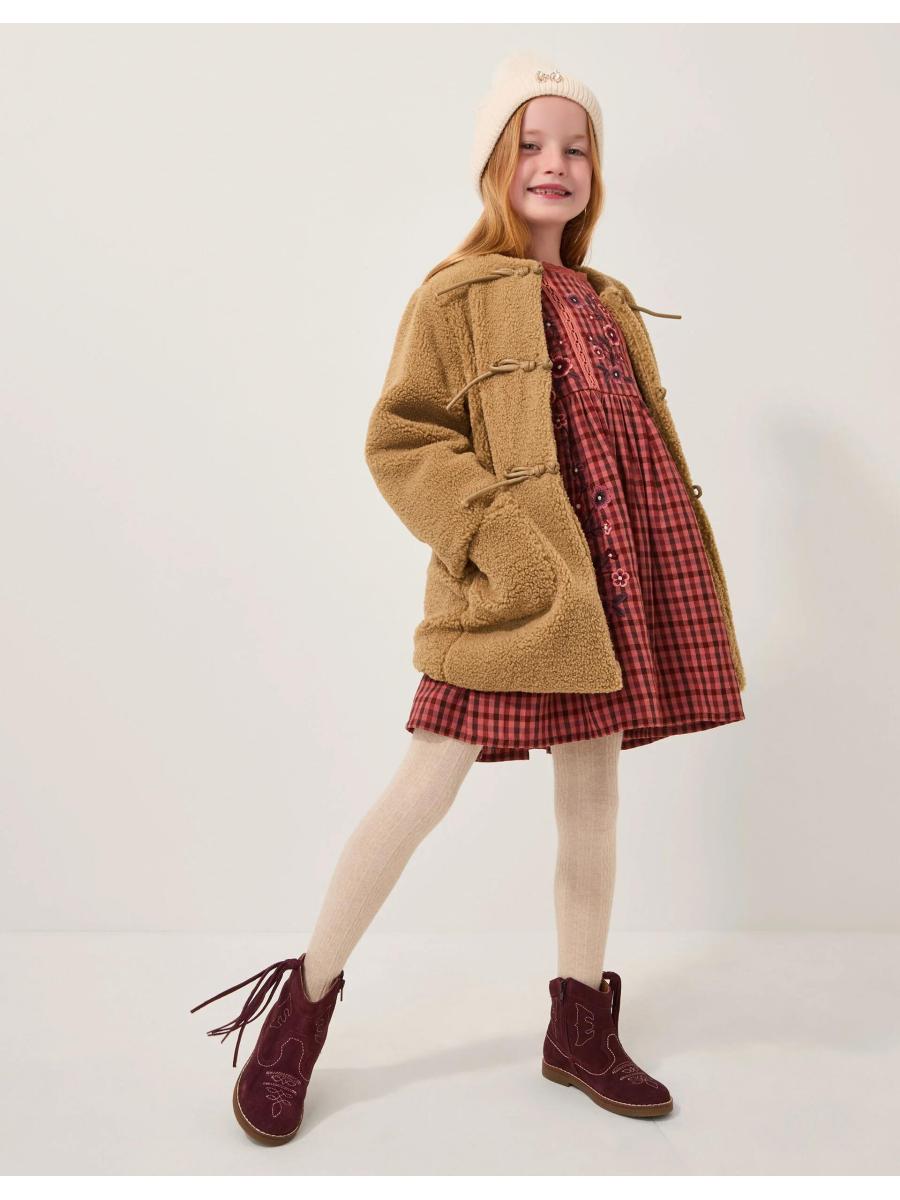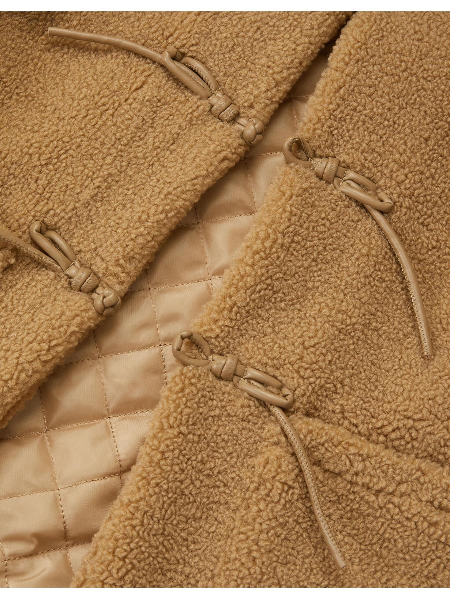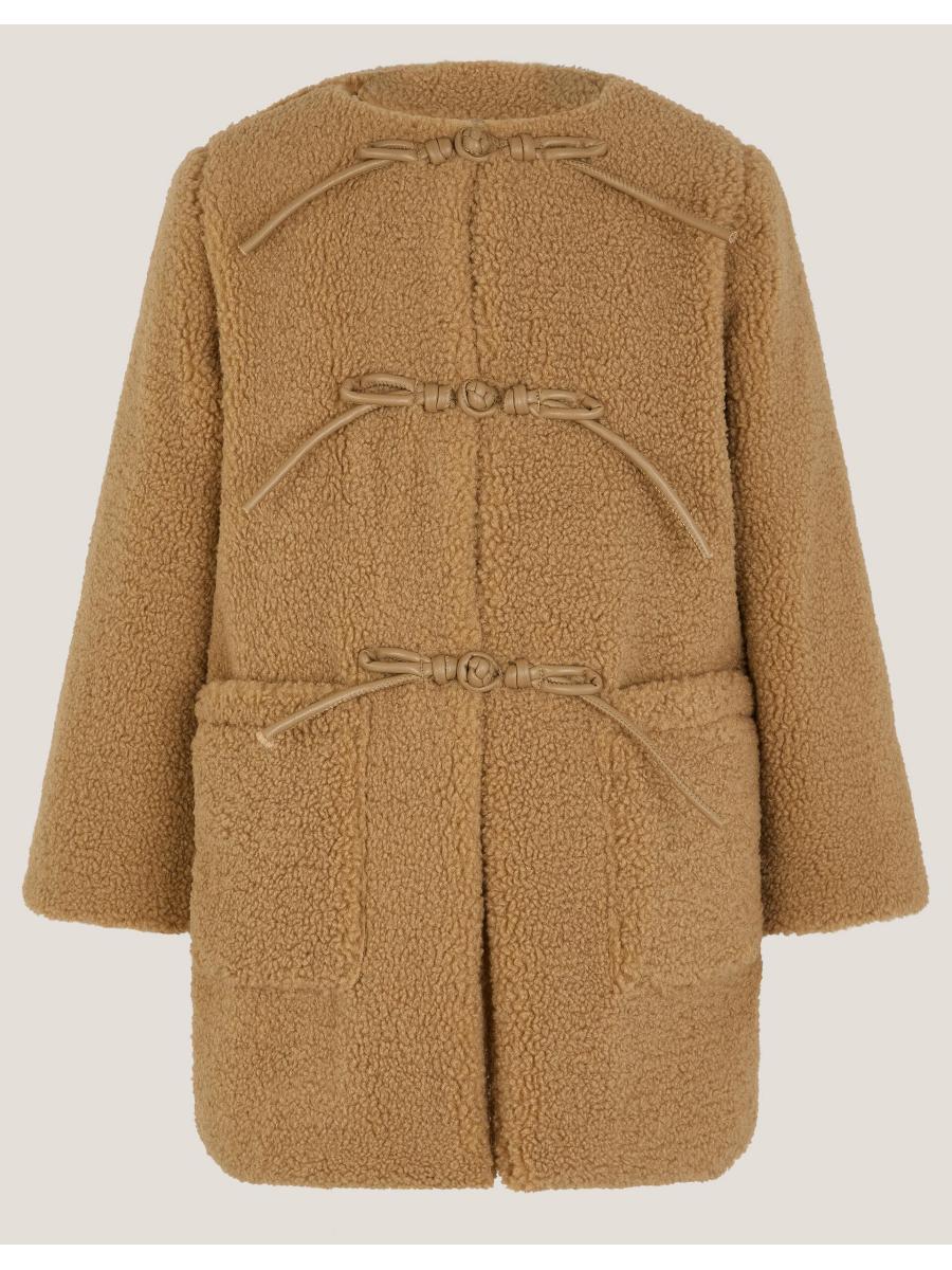 Snuggle up, buttercup. Designed to feel like a teddy bear hug, this borg coat features duffle-inspired toggle fastenings in faux leather, big patch pockets and soft quilted lining for extra warmth. Camel