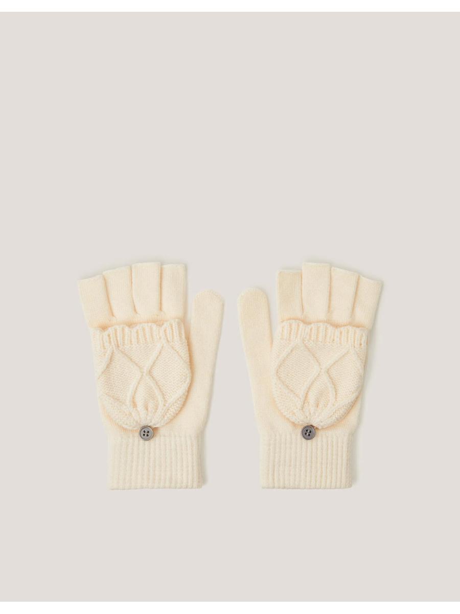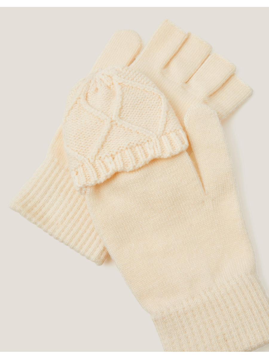 Beat the chill. A 2-in-1 style perfect for snowball fights, winter walks and chilly commutes to school. These fingerless gloves are stitched in super-soft yarns with fold-down mittens for extra warmth. Ivory
