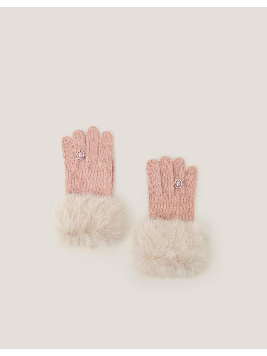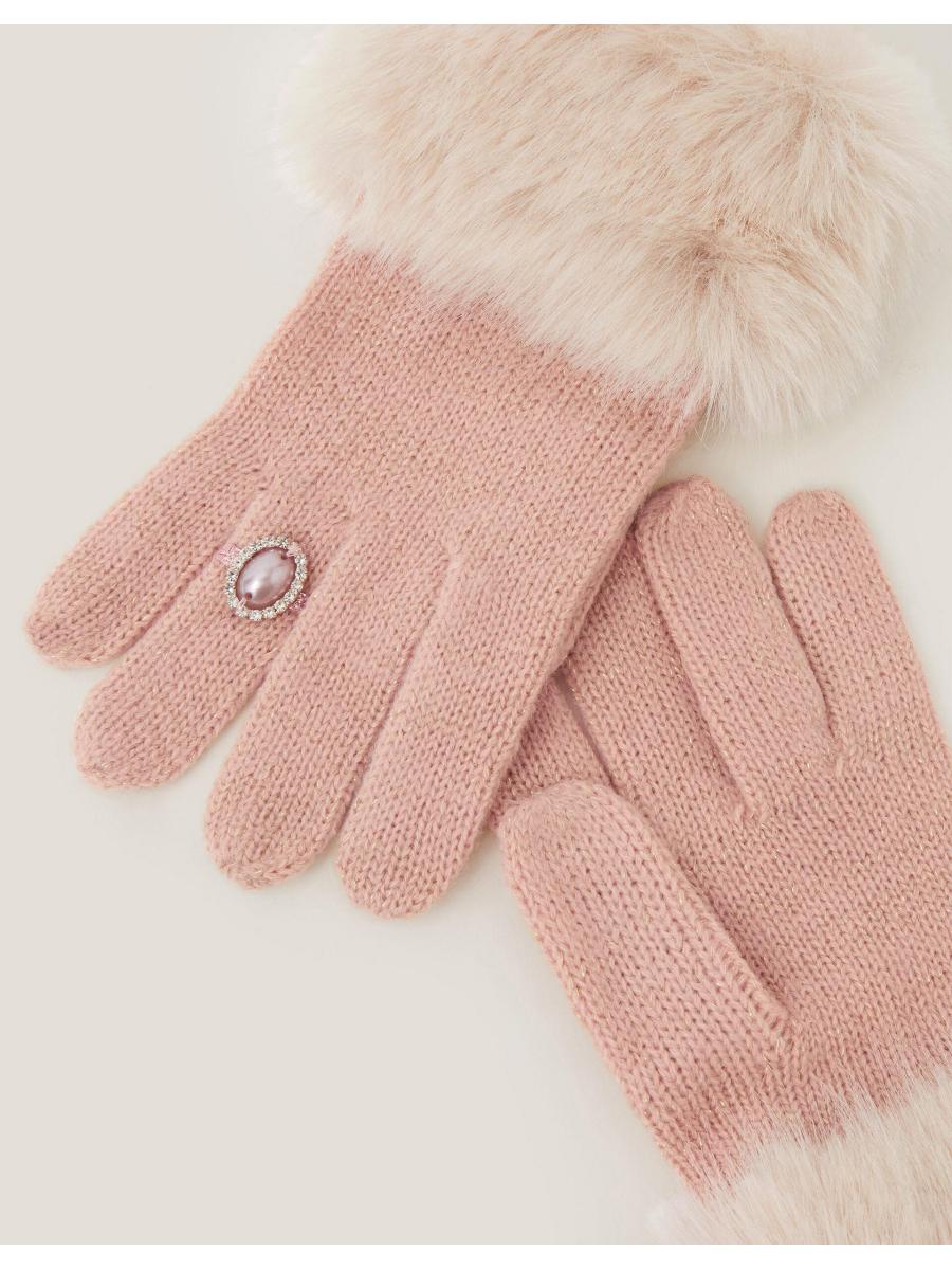Everything you touch turns to glam with these adorable gloves. Designed in a cosy knit, they showcase faux fur trims for a touch of elegance. Finished with a decorative pearl and diamanté ring. Pink