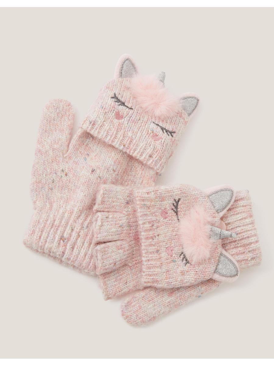 Unicorn accessories? big YES. Stitched with stardust (and baby pink yarns), these gloves have optional mitten covers they can button down or fold over the fingerless design. Pink