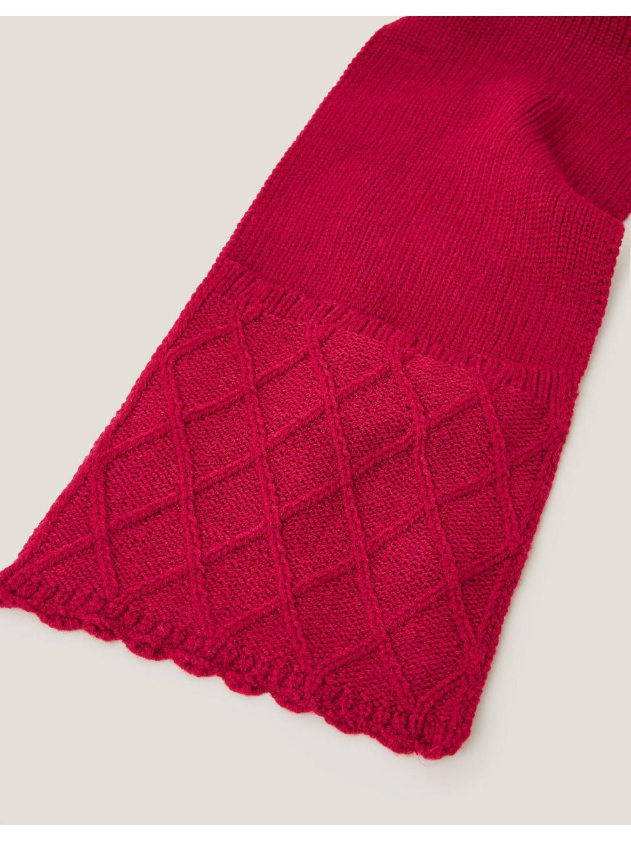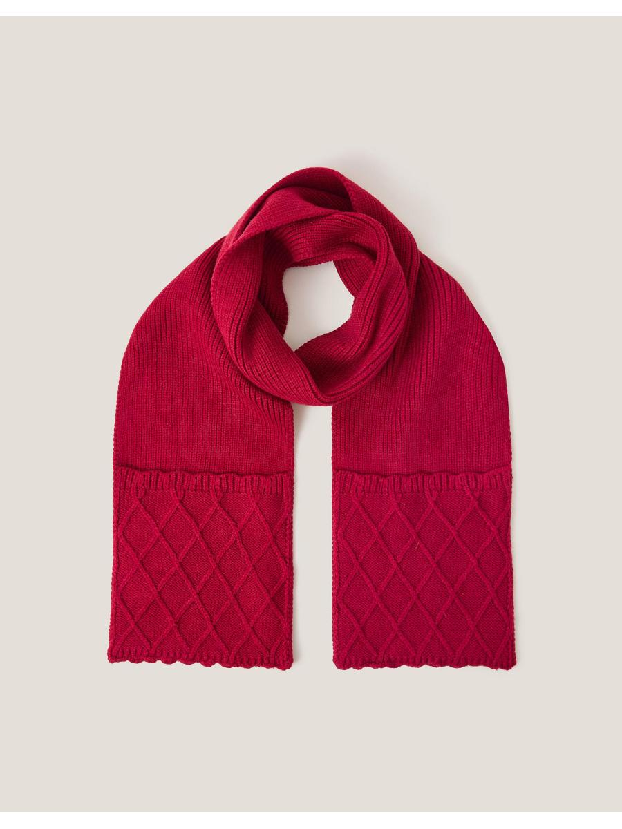 All bundled up. Whether it's a winter walk or the commute to school, this scarf helps beat the cold for all of life's adventures. Stitched in bright red yarns, it features a diamond pattern and scalloped trim.