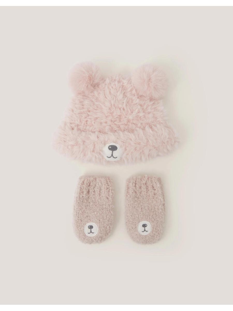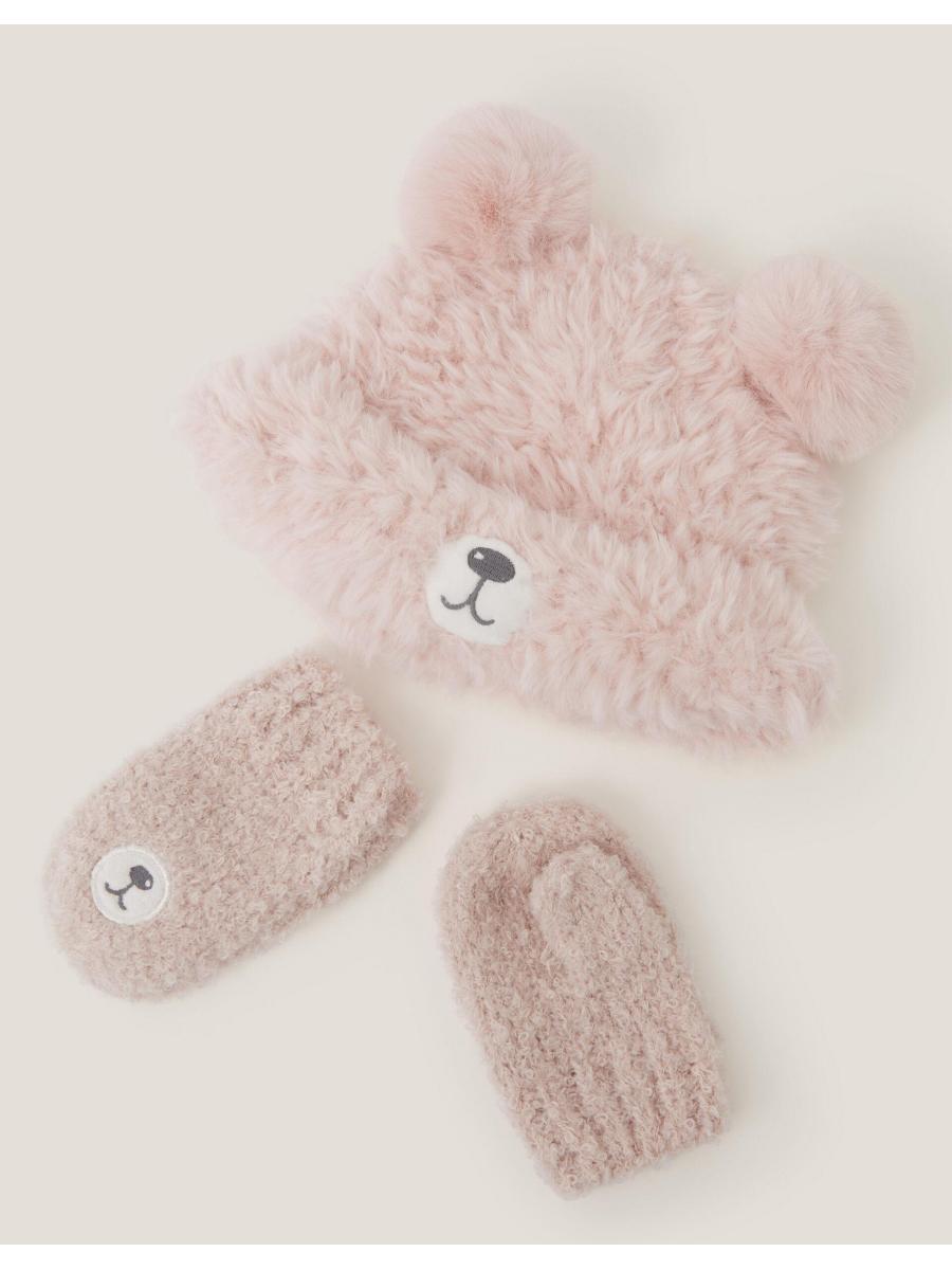 Say it with us: aaaw! Perfect for keeping them warm and snug in the winter, this set includes a fluffy beanie hat and matching mittens with a cute bear design. Pink