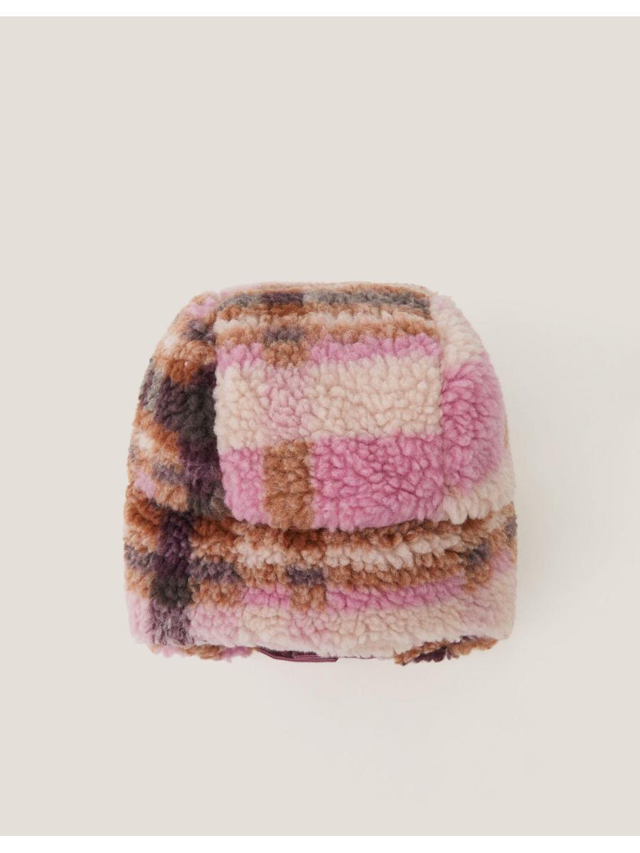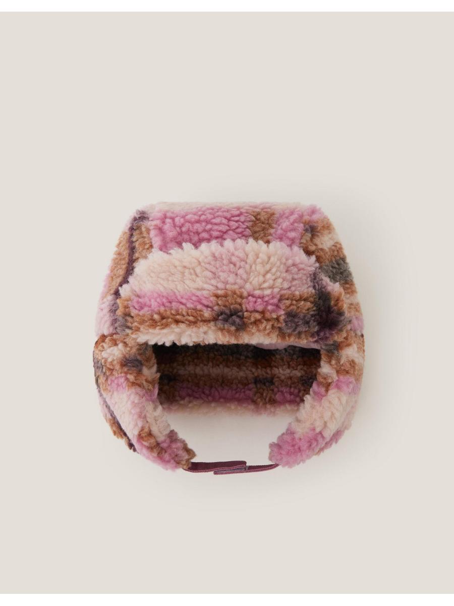 Expedition: Everest. Coated in super-soft borg that'll see them through the chilliest of days, this trapper hat boasts a check design and rip-tape fastening under the chin. Pink
