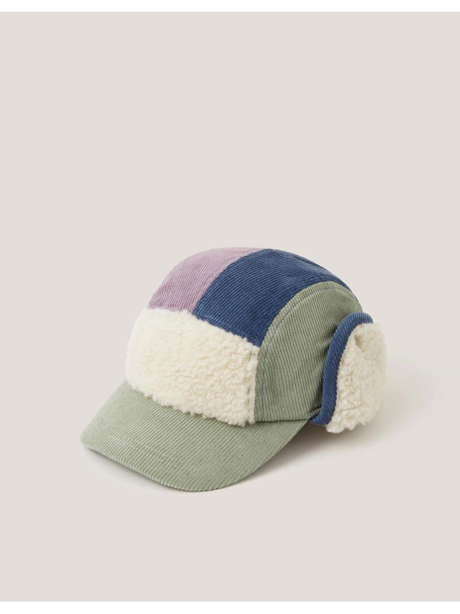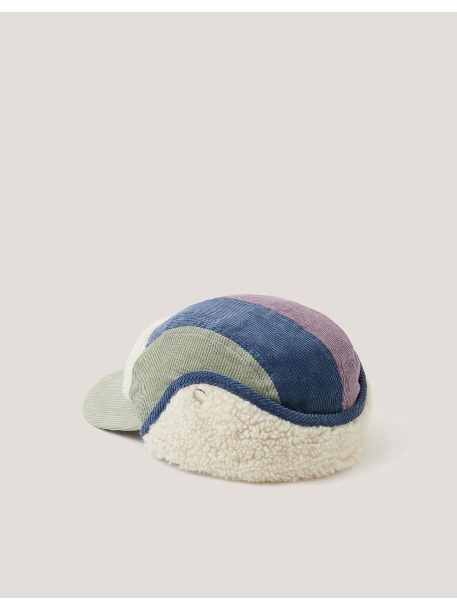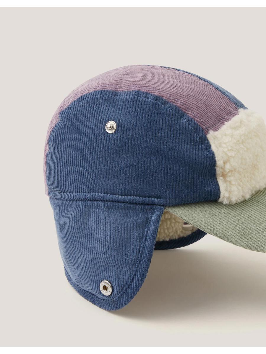 Cool dude. When the forecast is chilly with a chance of sun, this cap is the go-to. Made from corduroy in sage green, blue and lilac, it's finished with Trapper-style earflaps that have a cuddly borg lining. Multi