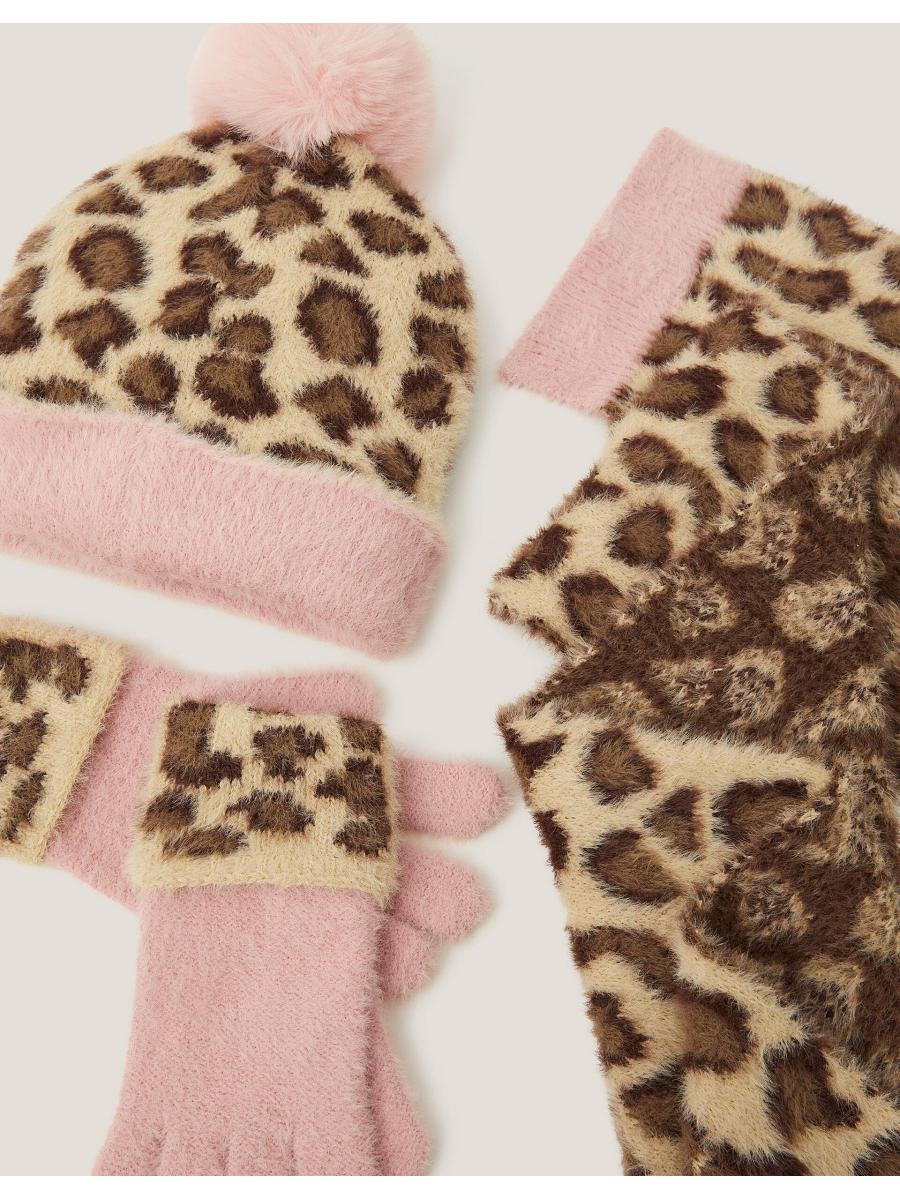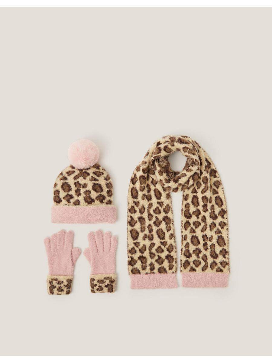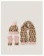 For the wild ones. Whisked in a super-soft fabric and boasting a trendy leopard print design, this matching set will keep them toasty warm in the winter months. Multi