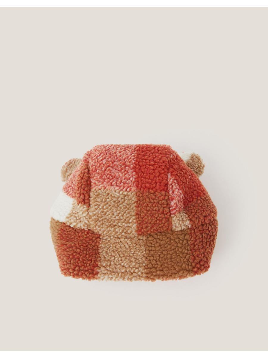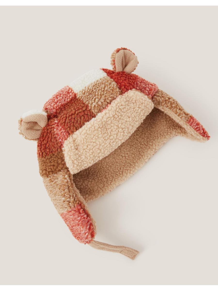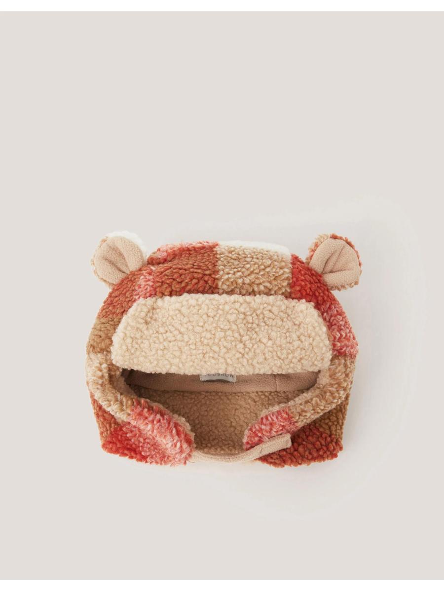 Cosy season. The coolest type of ear-warmers, this trapper hat is made from snuggly soft borg with a bold checkered pattern. Finished with a rip-tape fastening under the chin and (let's not forget) the teddy ears on top! Multi