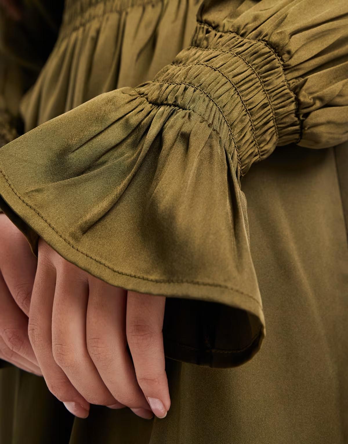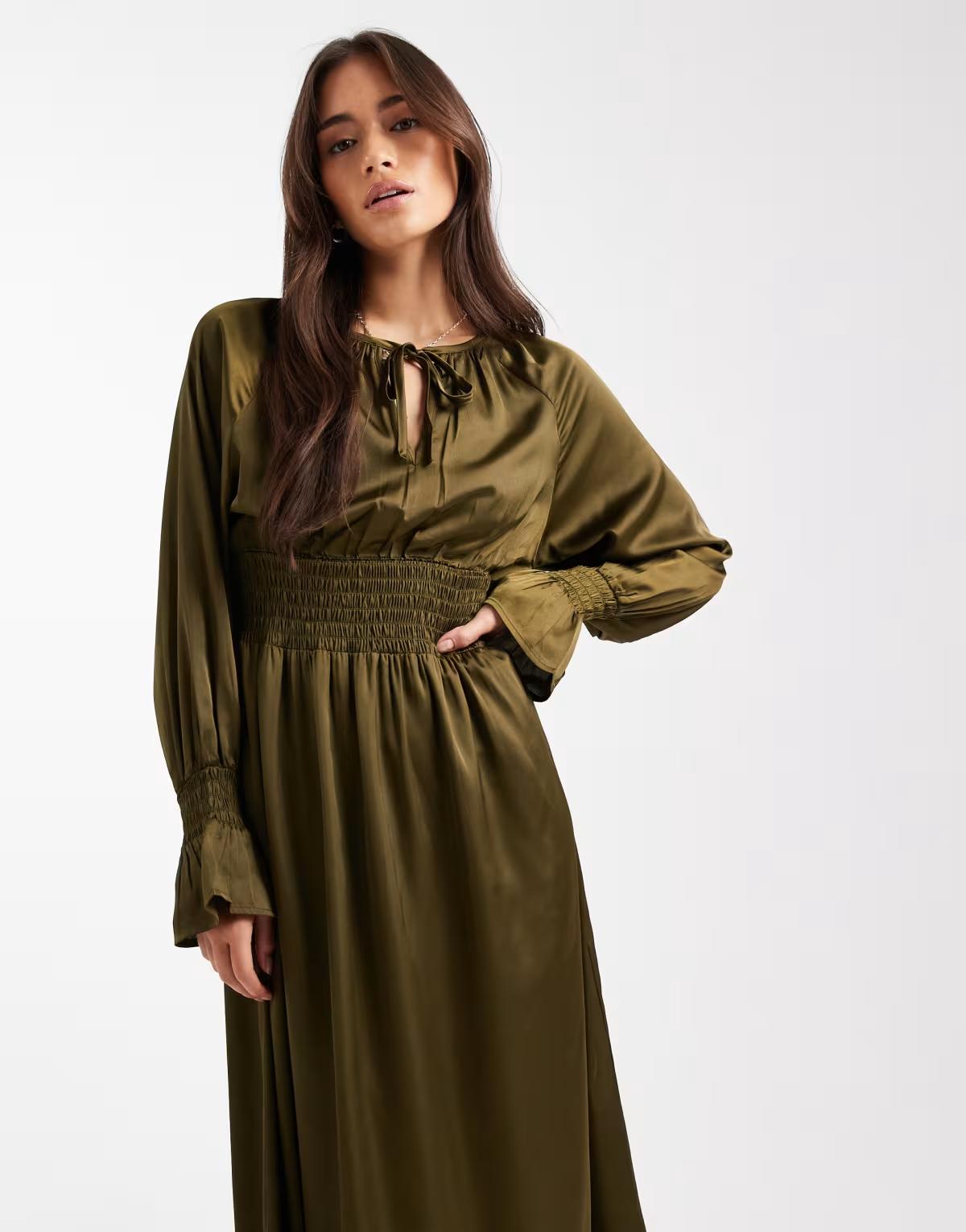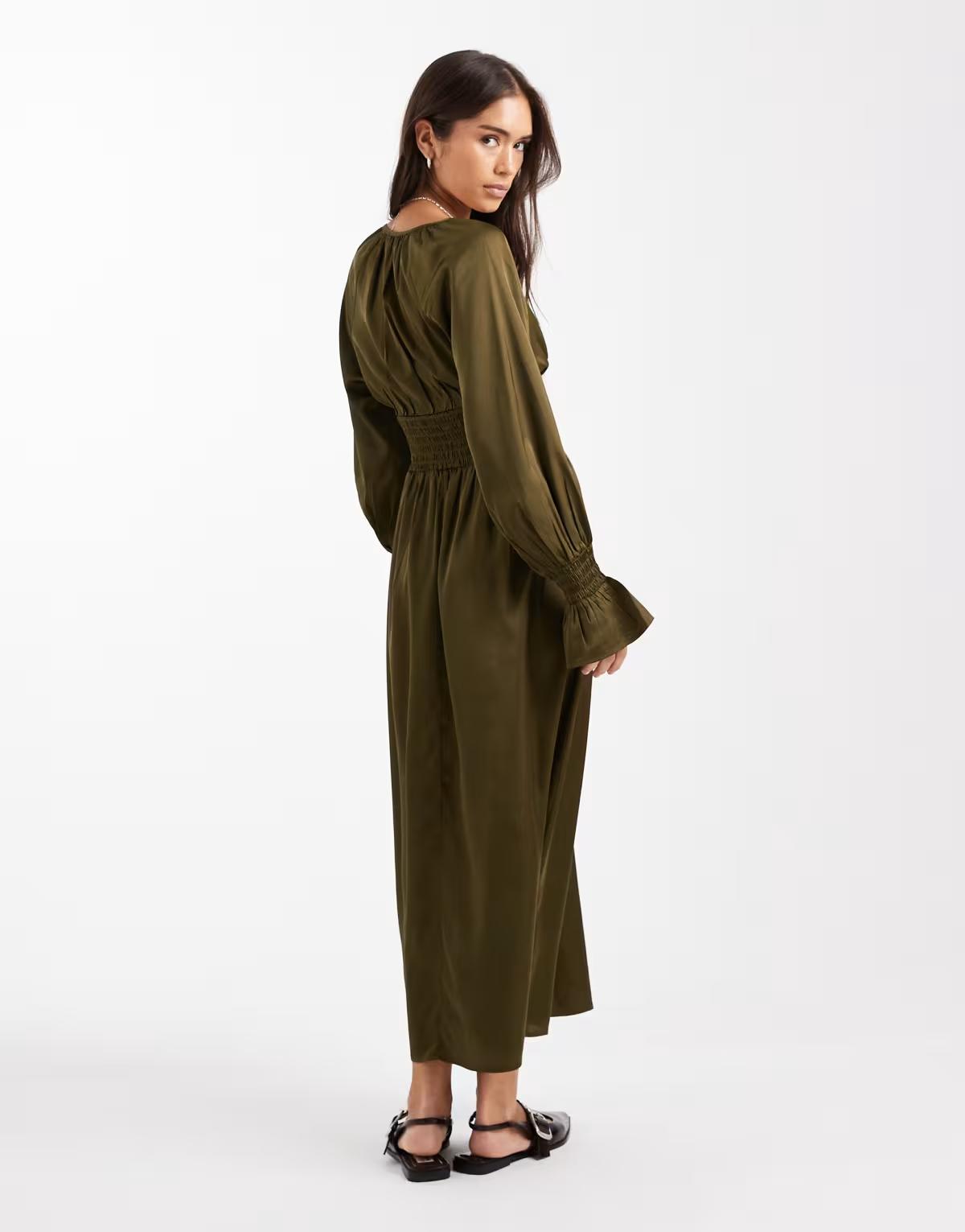 Wednesday's Girl long sleeve boho midaxi dress in green