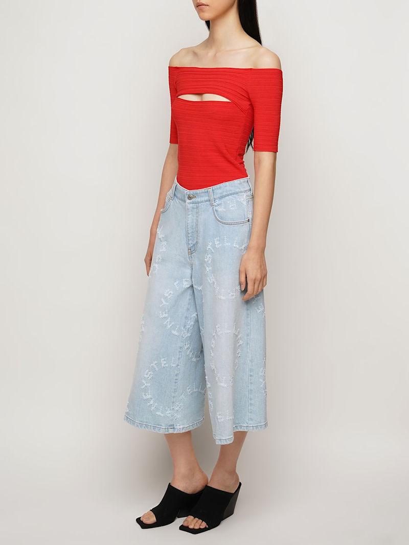 Logo高腰牛仔裤 - Vintage Blue - 女士 - Stella McCartney - 正面纽扣和隐藏式拉链开合.