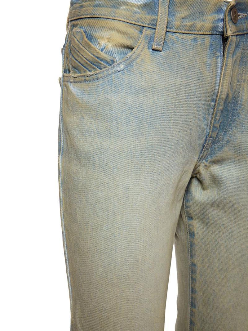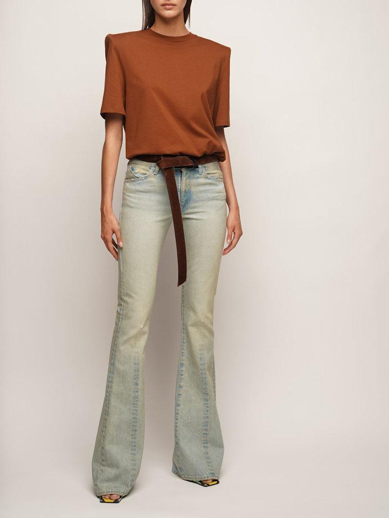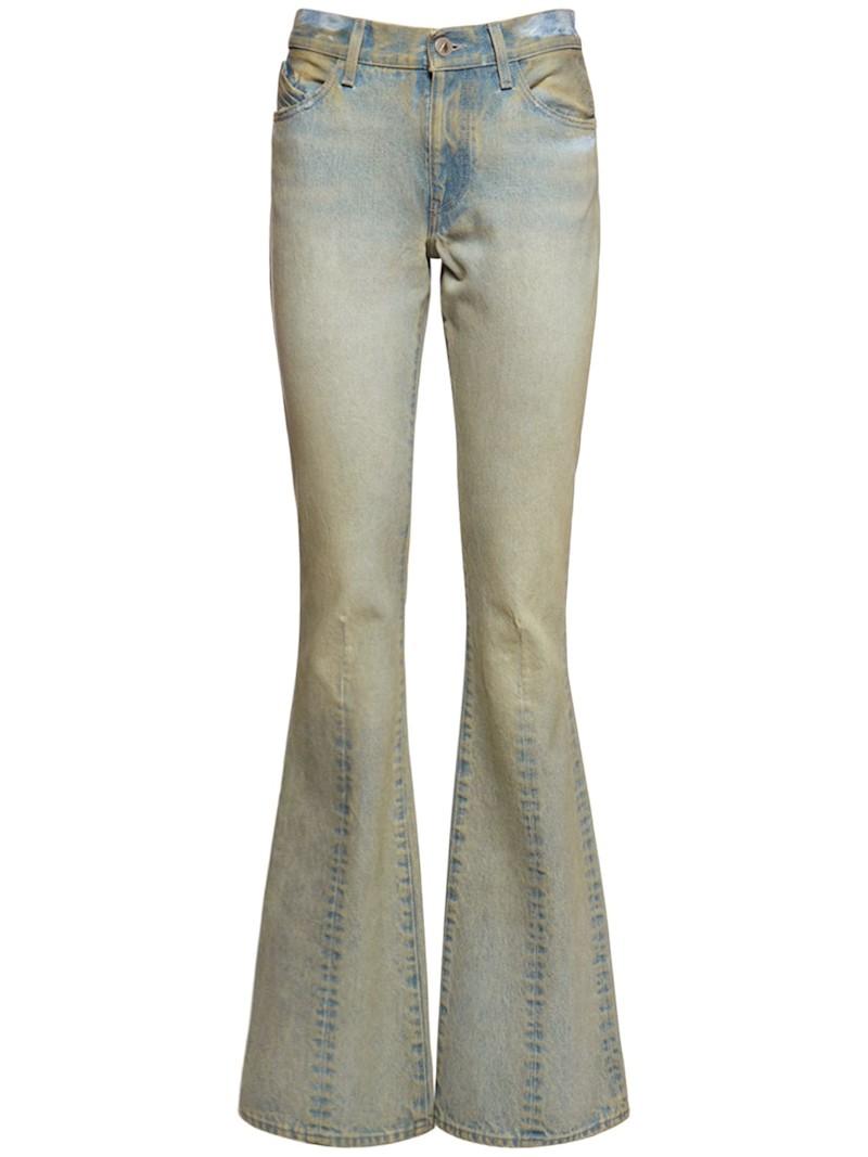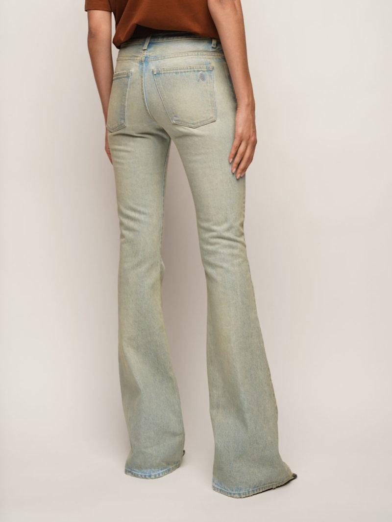 Rachel褪色棉质喇叭腿牛仔裤 - Sand Denim - 女士 - The Attico - 正面纽扣和隐藏式拉链开合.