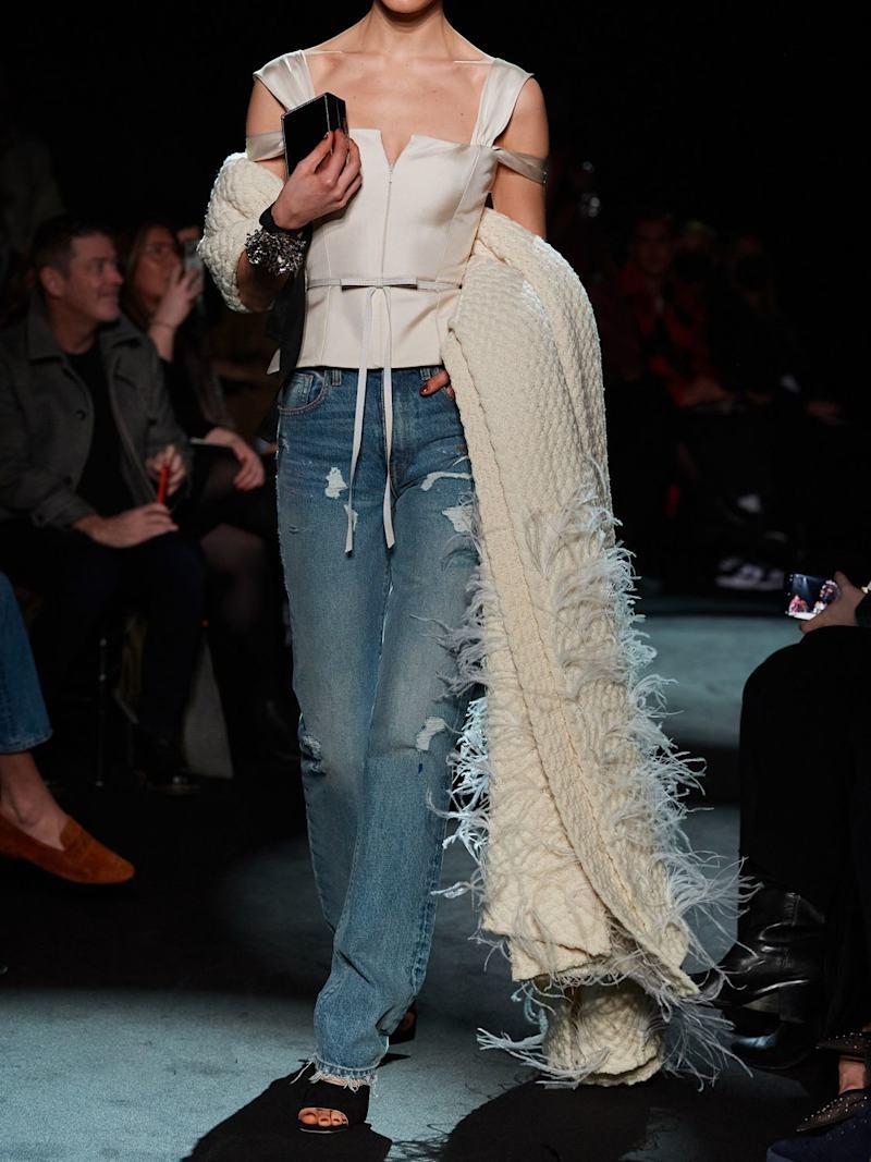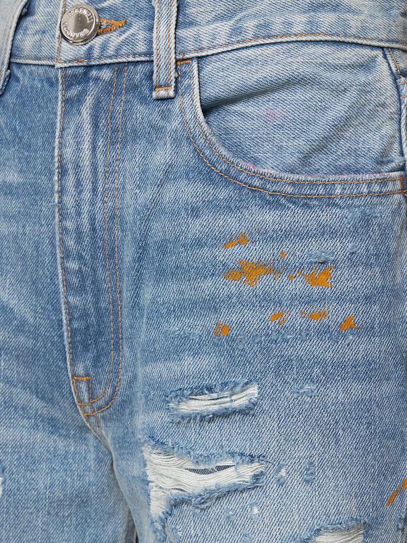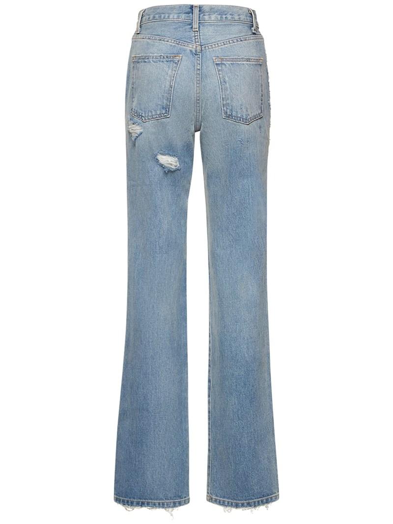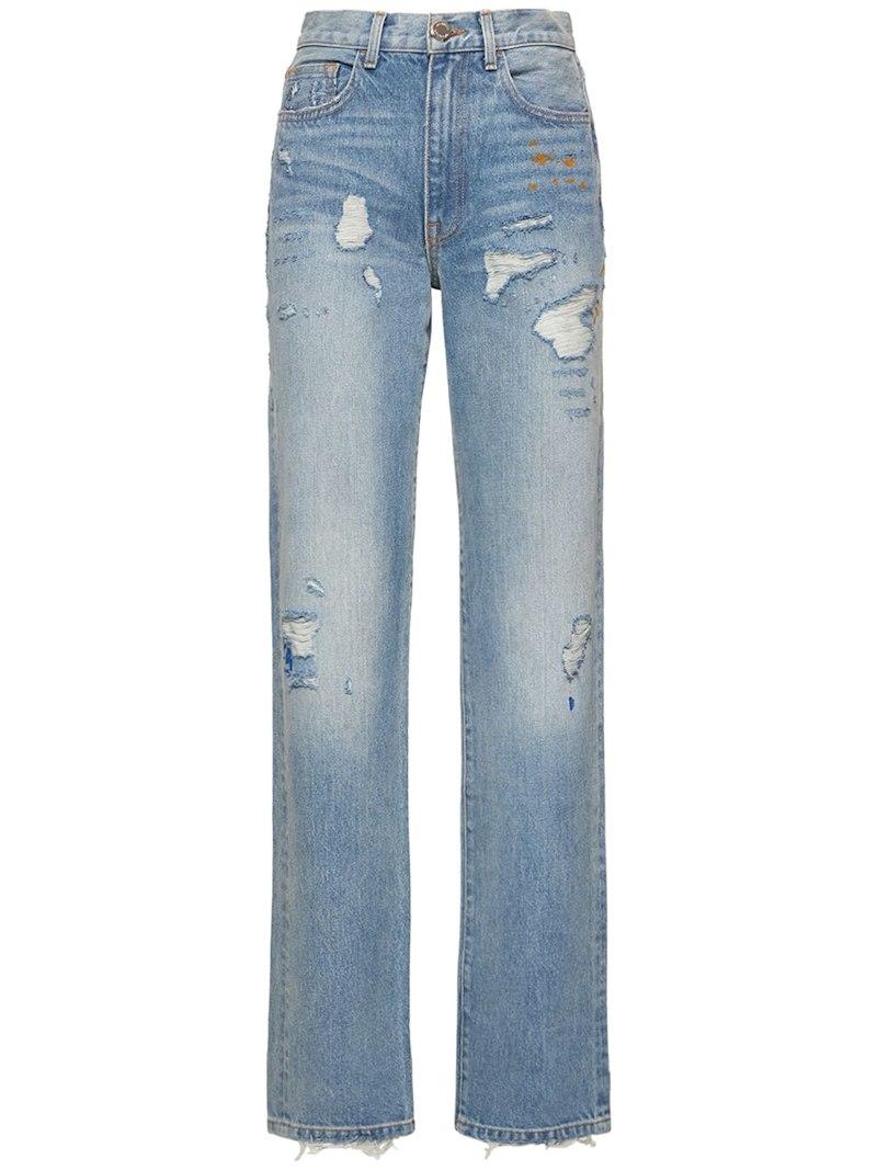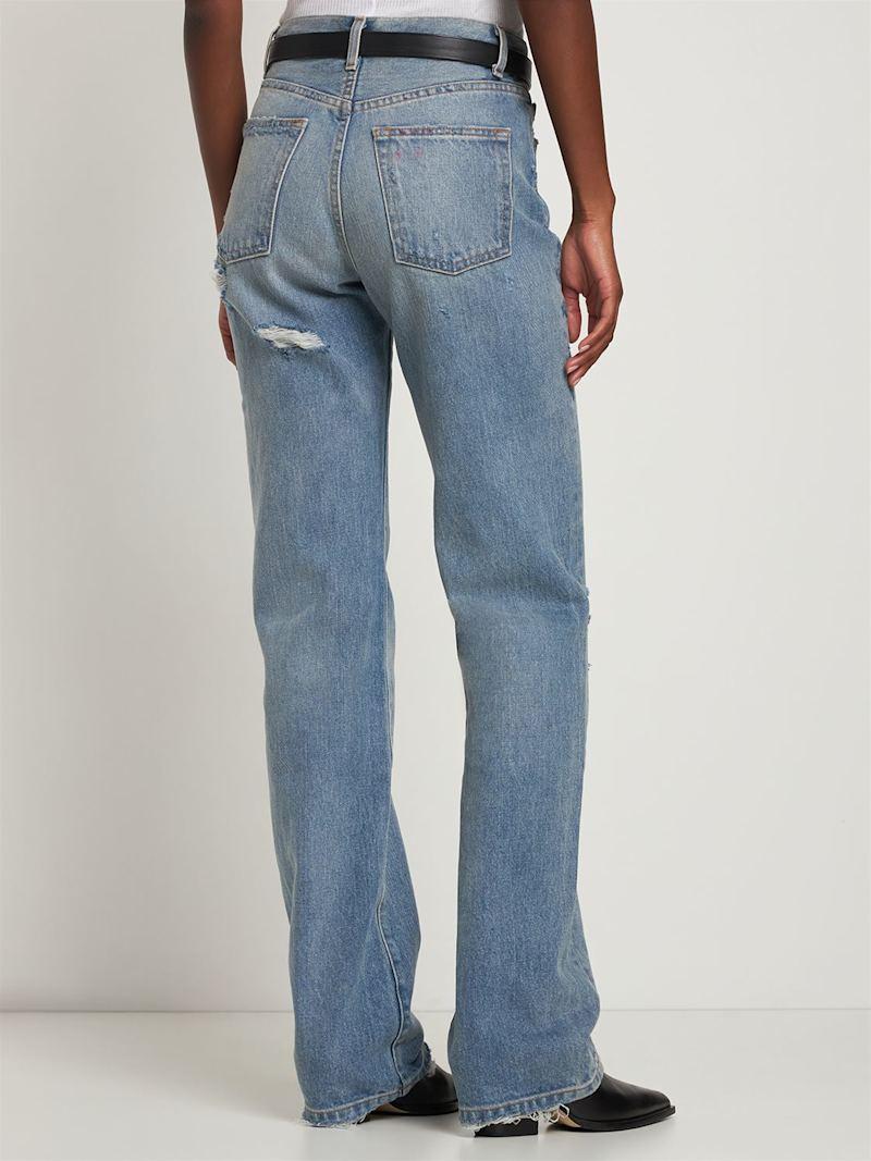 高腰直筒棉质牛仔裤 - 牛仔 - 女士 - Brandon Maxwell - 正面纽扣和隐藏式拉链开合.