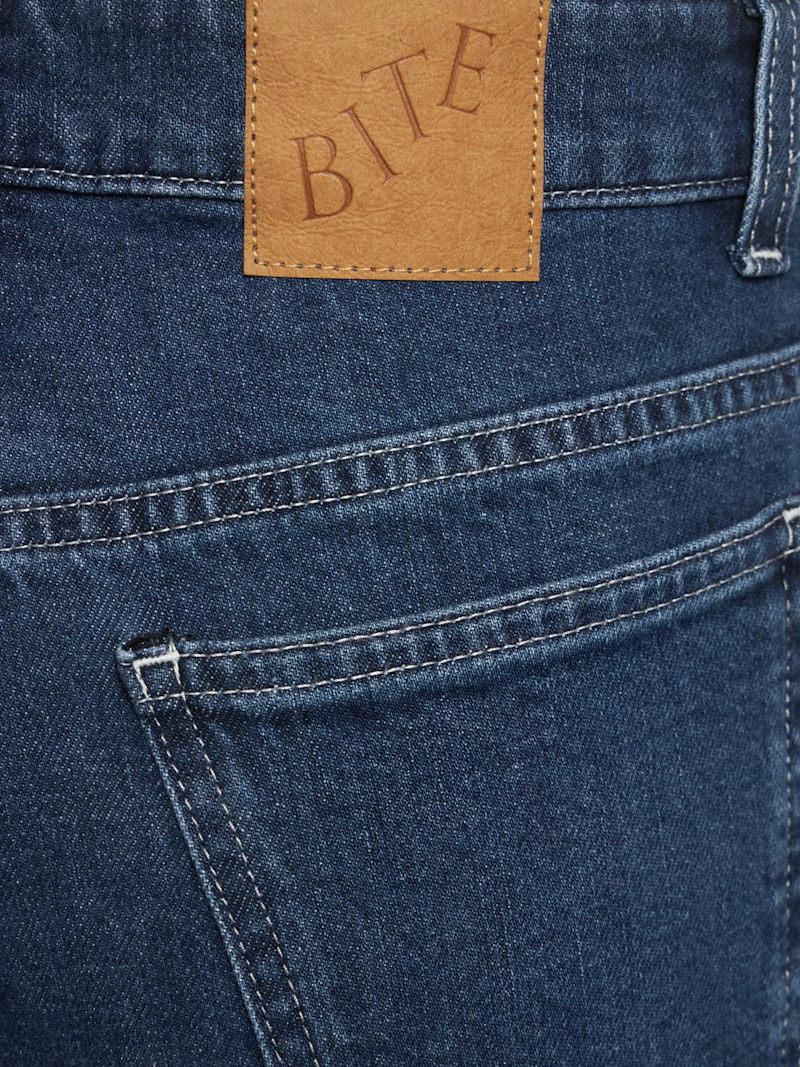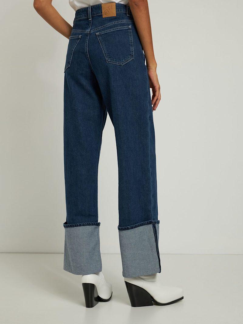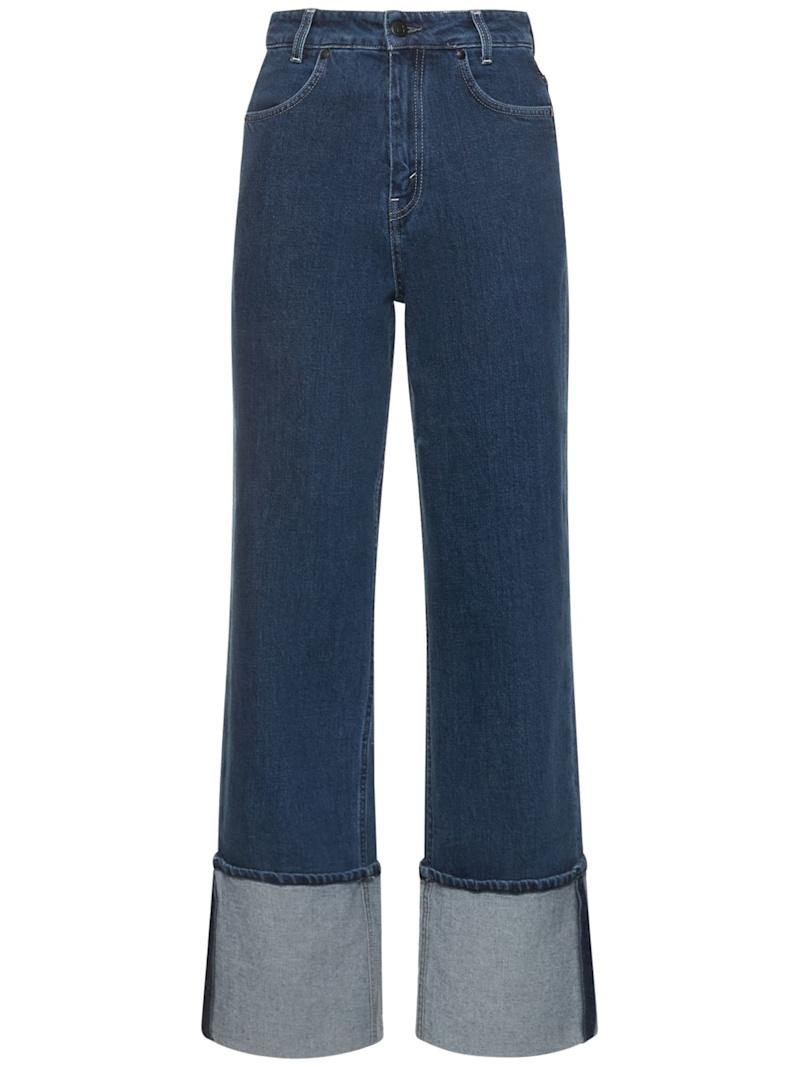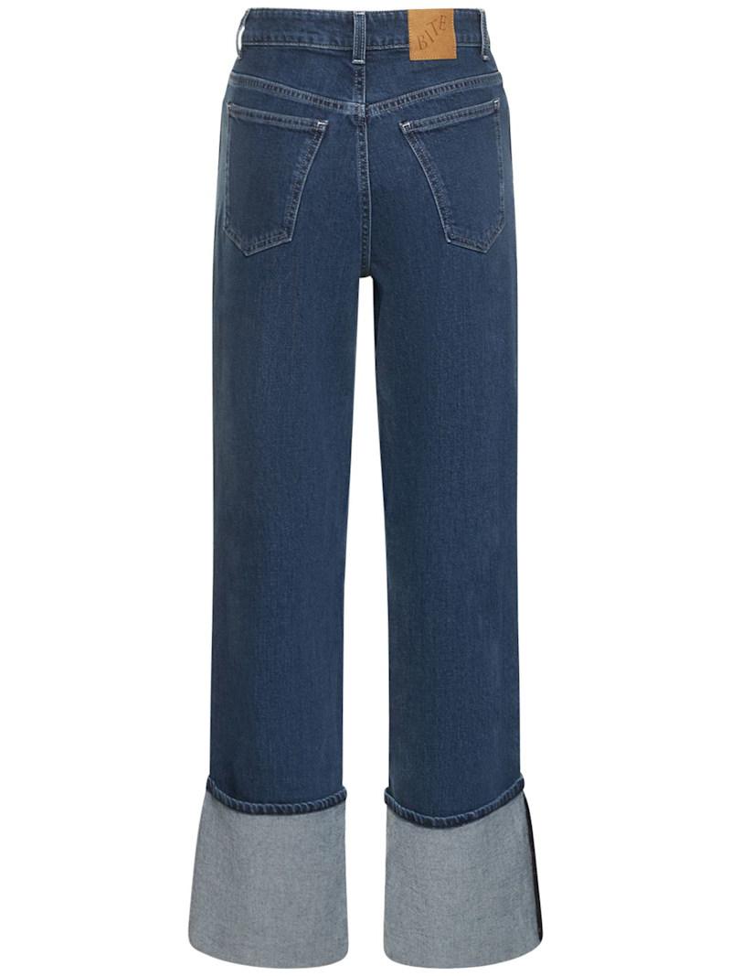 宽折边直筒牛仔裤 - 蓝色 - 女士 - Bite Studios - 正面纽扣和隐藏式拉链开合.