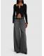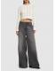 低腰棉质牛仔阔腿裤 - 灰色 - 女士 - Gauchere - 正面纽扣和隐藏式拉链开合.